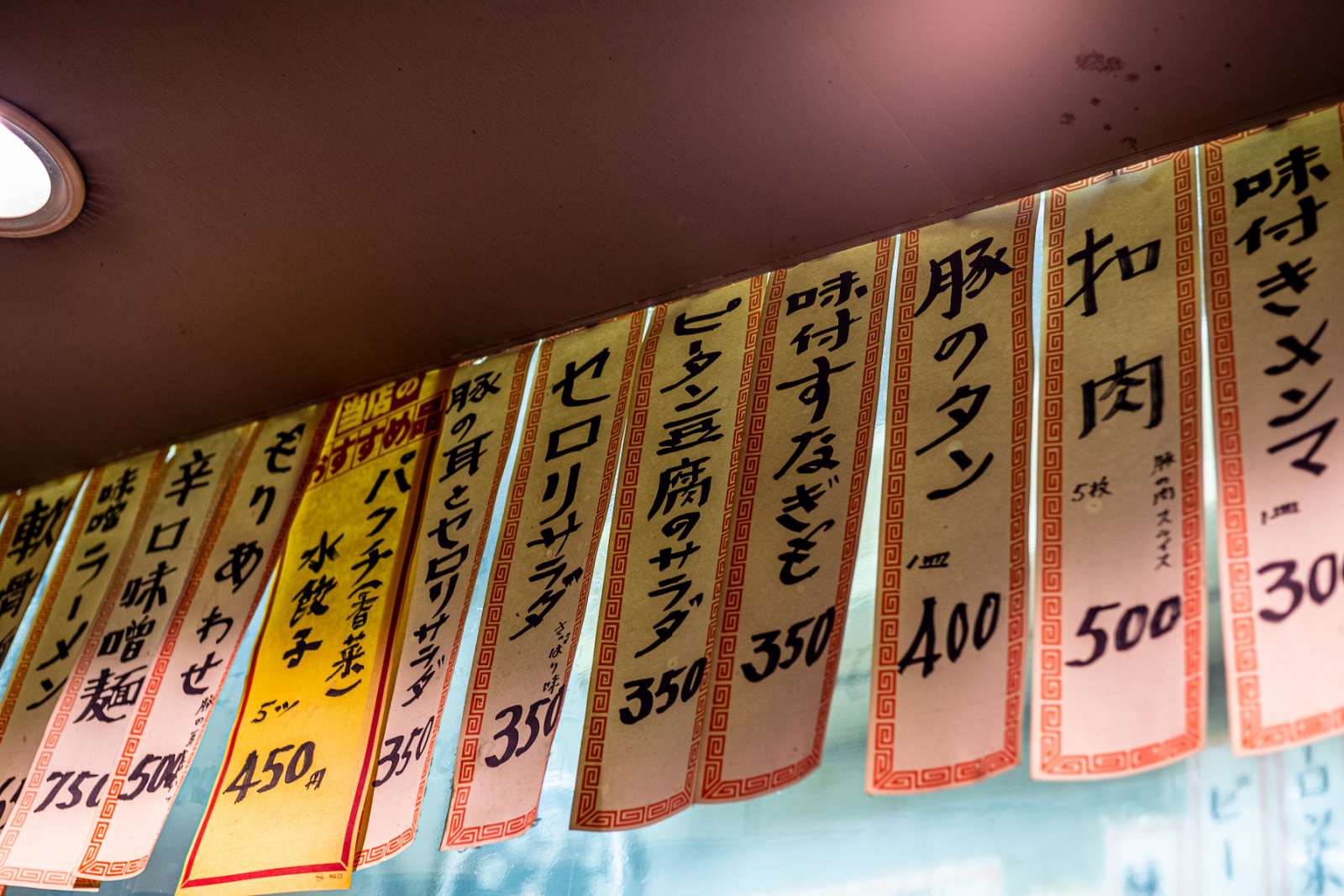 わたしが訪れたのは17時前。夕飯には少しはやい時間だったので、5席あるカウンターにはまだ誰も座っていませんでした。こんにちは、と声をかけると「いらっしゃい」とお母さんが答えてくれます。電話がなって、中国語で誰かと早口で話をしているお父さん。ブログに記事を書いてもよいかどうか伺ってみると「はい、いいですよ」とお母さんが優しく答えてくれる。席につくとカウンターの上には、ずらりと手書きのメニューが並んでいます。