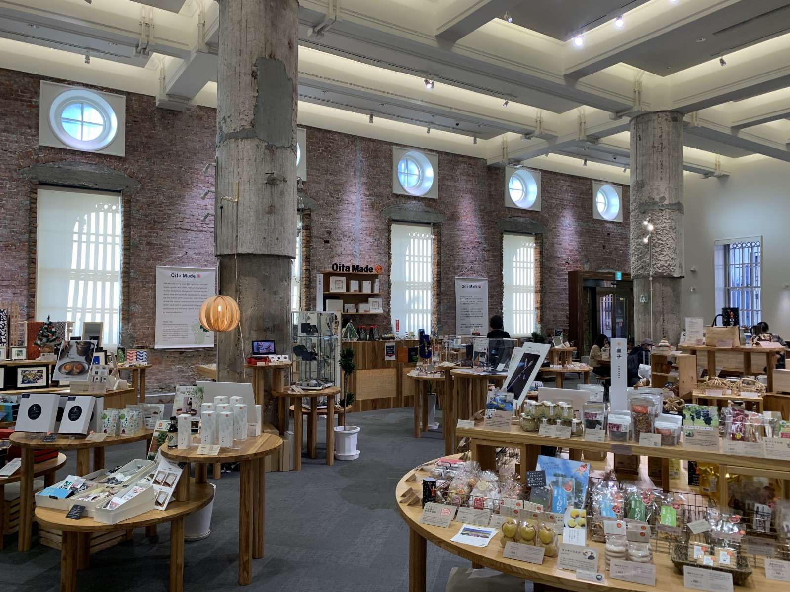 最近まで銀行として使われていたんですが、2年ほど前にリニューアルして、大分のいいものをセレクトしてひとつのブランドとして展開する「Oita Made(おおいたメイド)」ショップの本店となっています。で、ここにタウトナコーヒーという美味しいコーヒー屋さんも入っているんです。そのコーヒーを飲みながら本を読もう、と思ったんですが。席が埋まっていたので諦めることに。