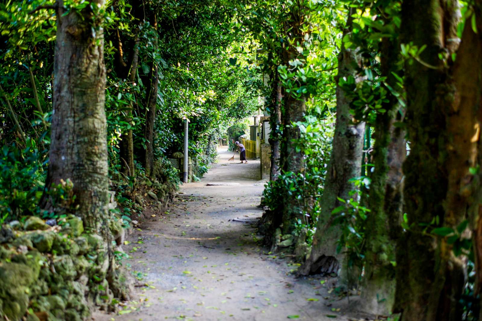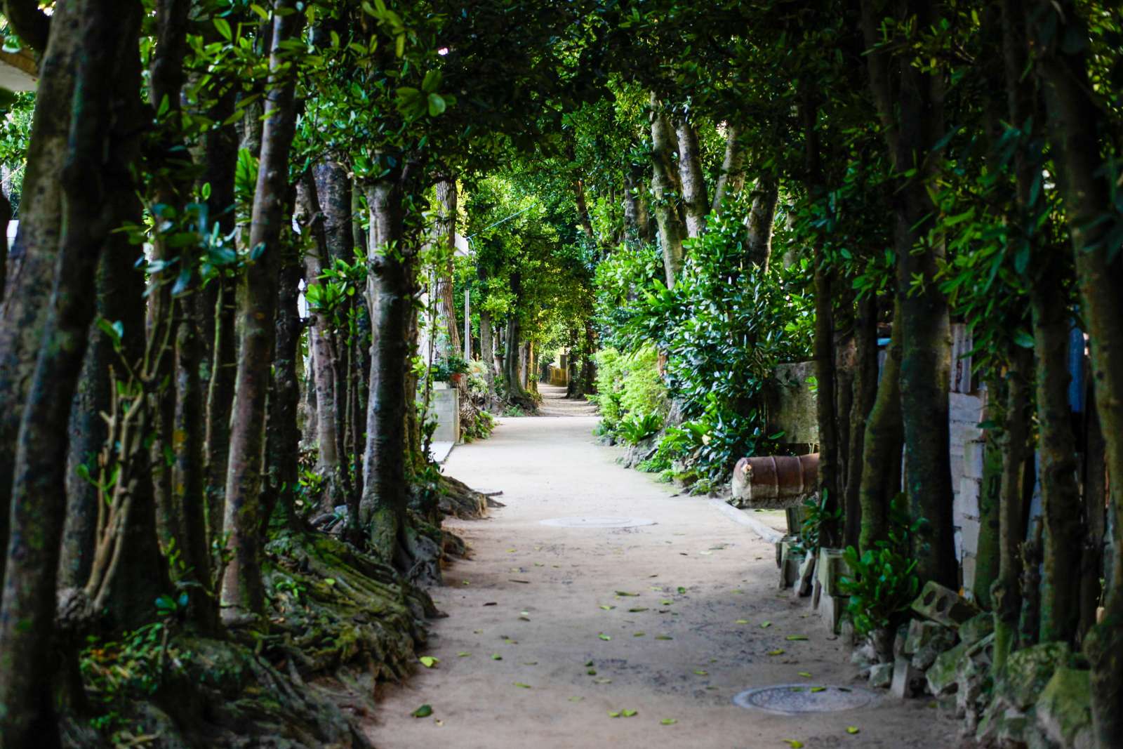 フクギに囲まれた道はこんな感じ。