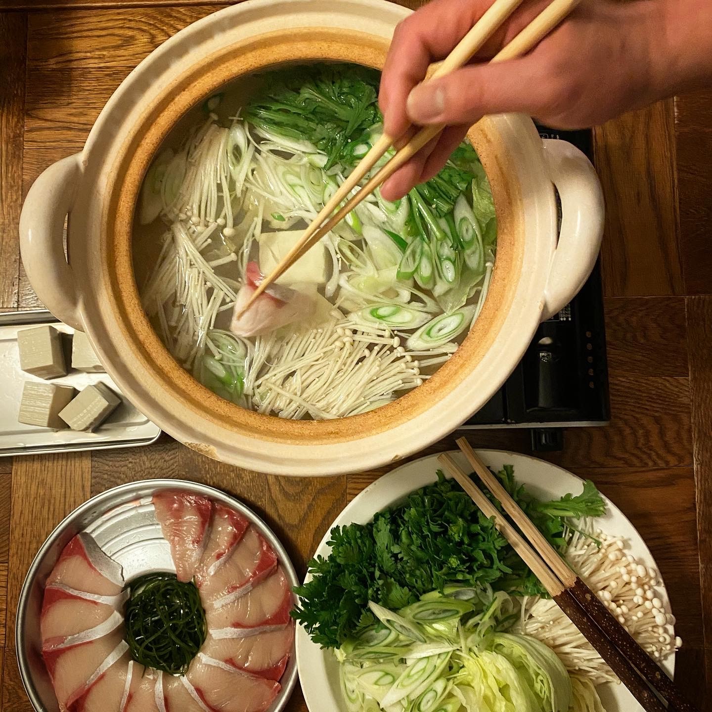 ぶりしゃぶ、もずく酢、明太子、白ごはん