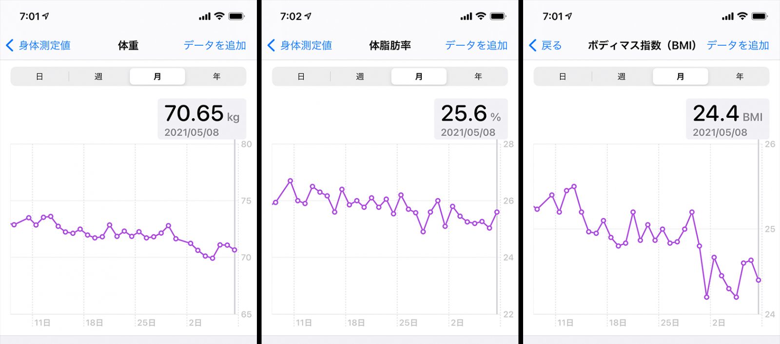 ざん!体重は順調に減っております。 70という数が見える安心感よ。一回69kg代になったんですが、よろこんで、柿ピー食いまくってたらまた太りました。塩分は、水分溜め込みますからね。無駄に太る。やめましょう。