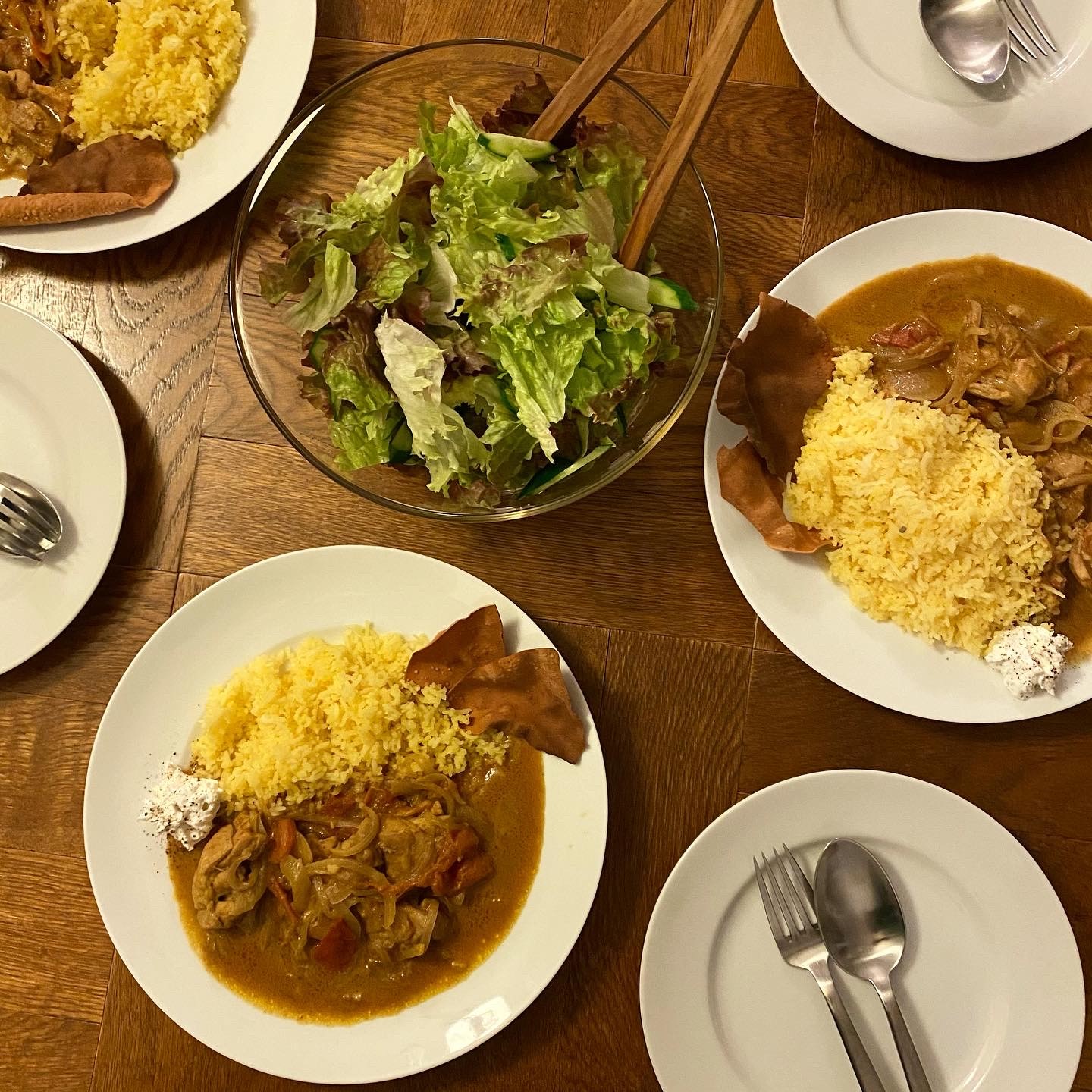 スパイスを油で炒め香りを移し、はりきってバスマティライスを炊いて、パパドを焼いて~と凝れば凝るほど上がる上がる!そんな気持ちとは裏腹にひと口食べて「ごめん、このカレームリやわ…」と息子。カレーと言えば、まだまだ、ザ・カレーライス(甘口)の中学生です。