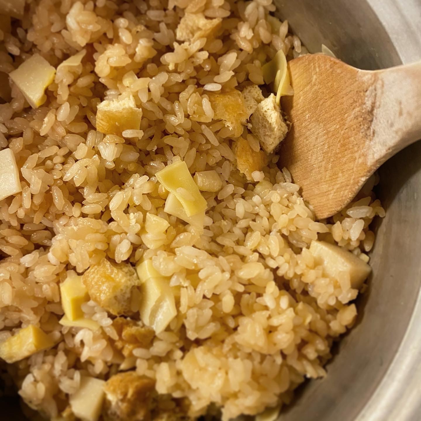とりあえずの筍ごはん、具材を賽の目に切るのがお気に入り。