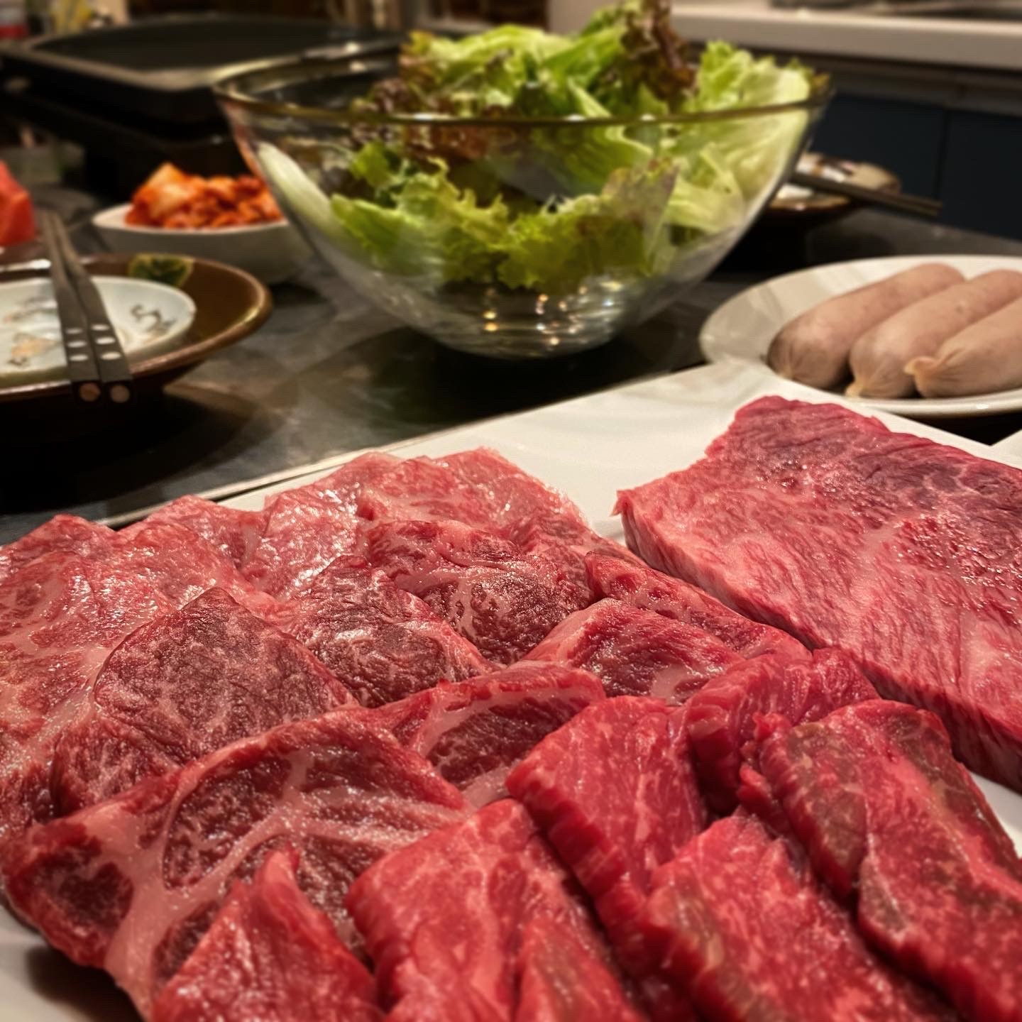 きょうは母の日焼肉やで~!って母の日に完全に便乗した男子考案メニュー。朝からはりきってリュック背負って、チャリで肉買いに行く夫よ…