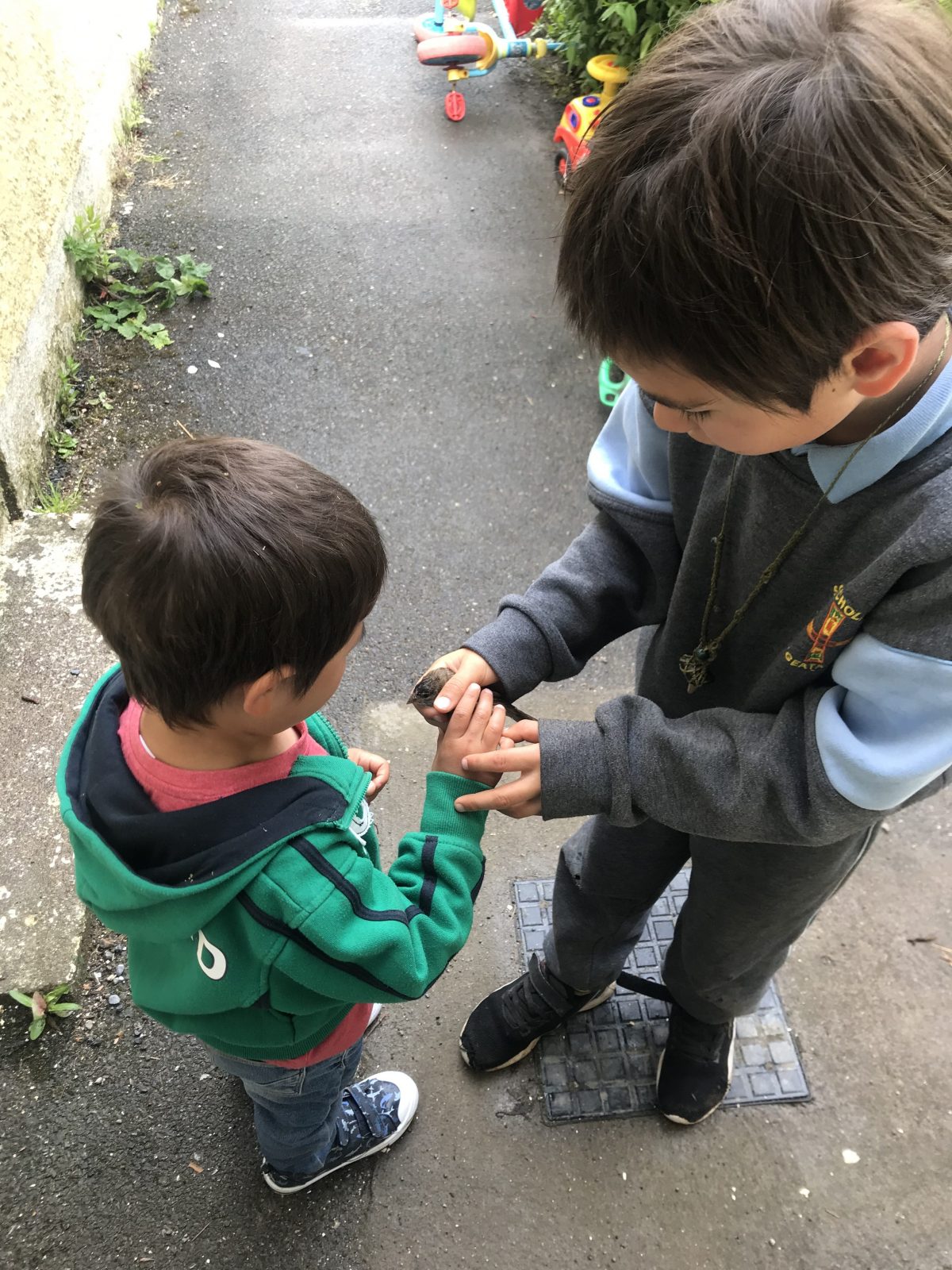 鳥を見るのが大好きな子供達。