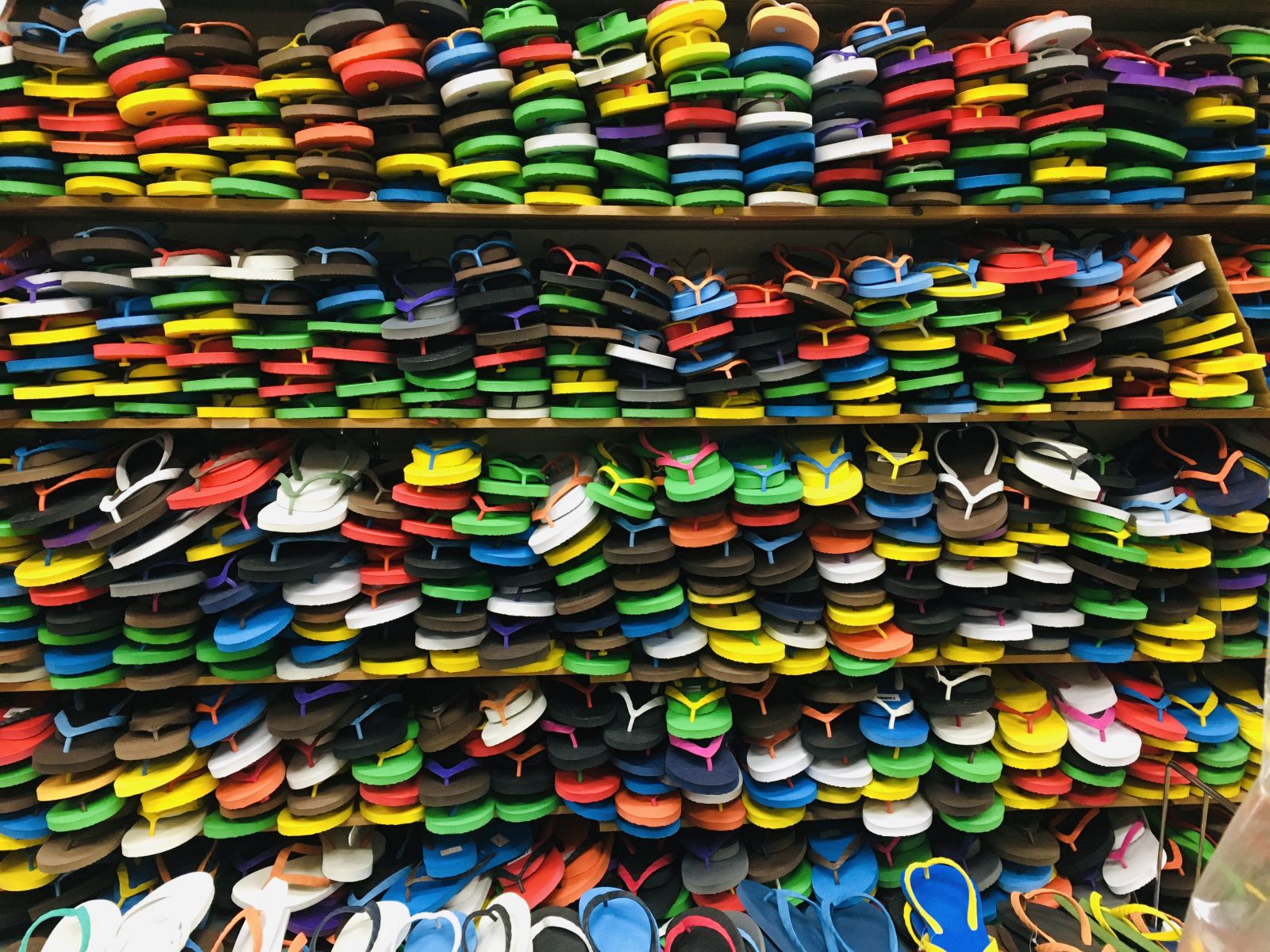 辞書でひいたら「色とりどりのビーサンで目がくらむような光景」って出そう。