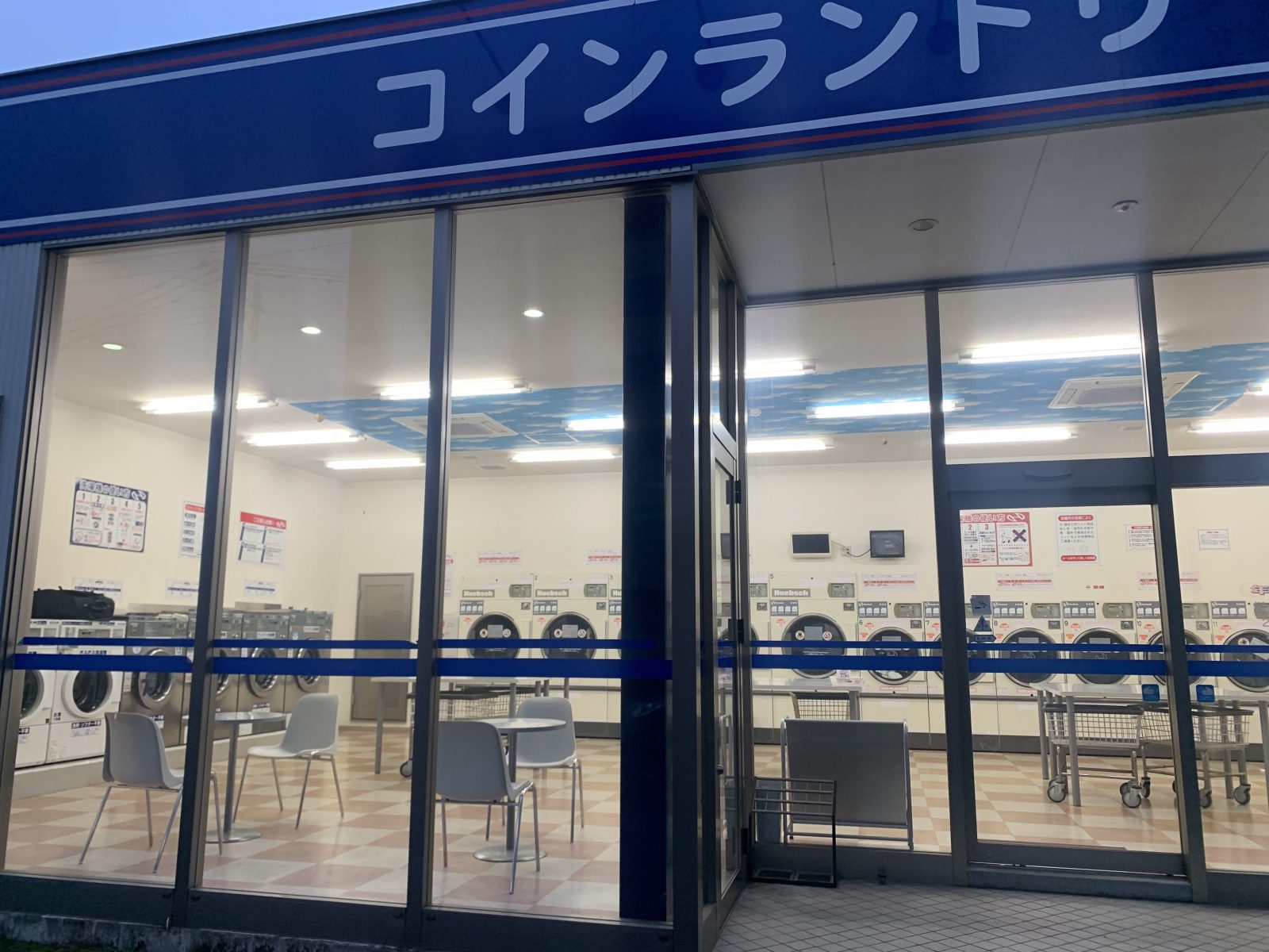 車で5分の馴染みの店に到着。雨の日は夜遅い時間でも全部乾燥機が回っているこのランドリーでも、さすがに午前4時30分にはひとりも利用者がいなかった。
