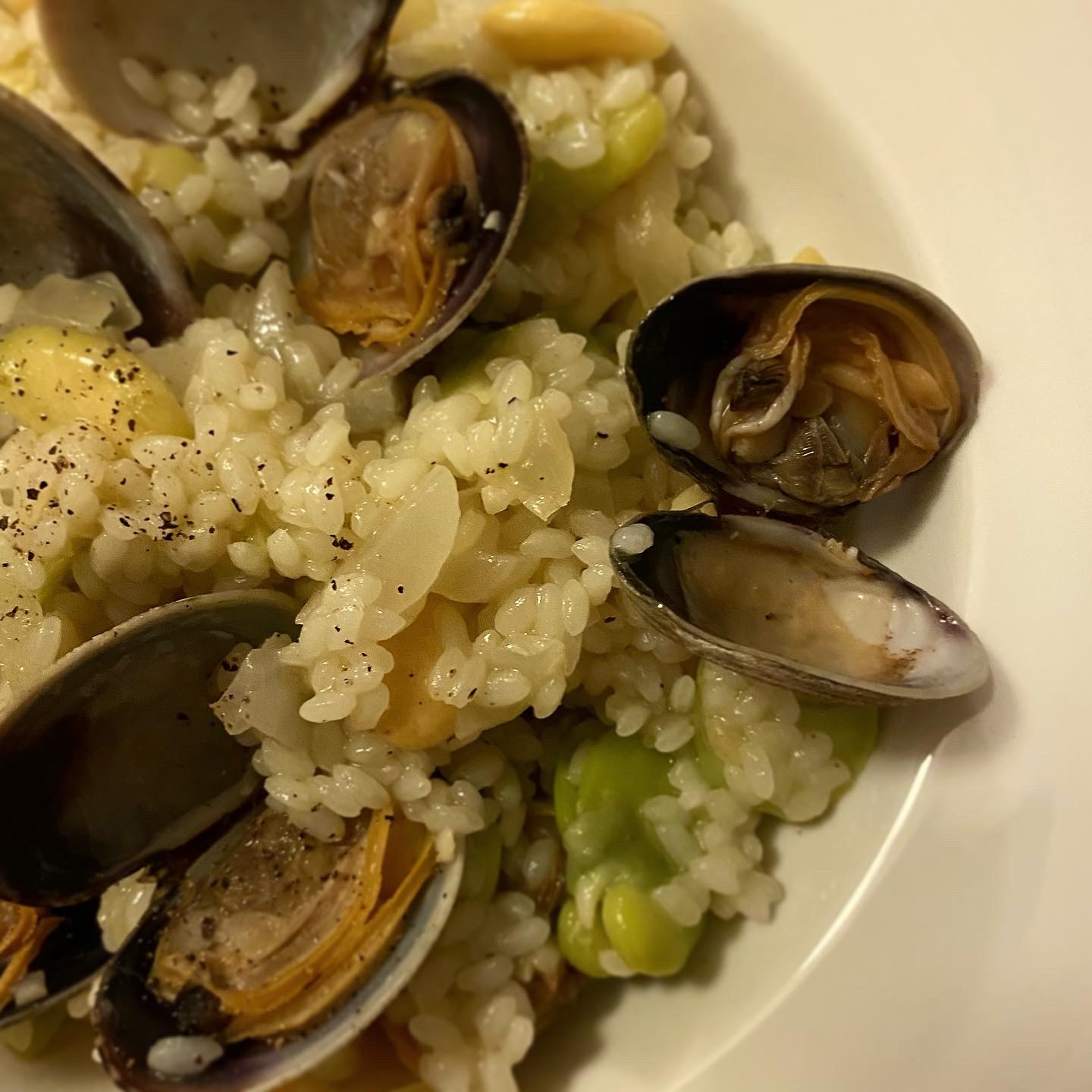 今夜のリゾットは、そんな息子が大量の空豆を剥き、元祖メガネの夫が調理してくれました。