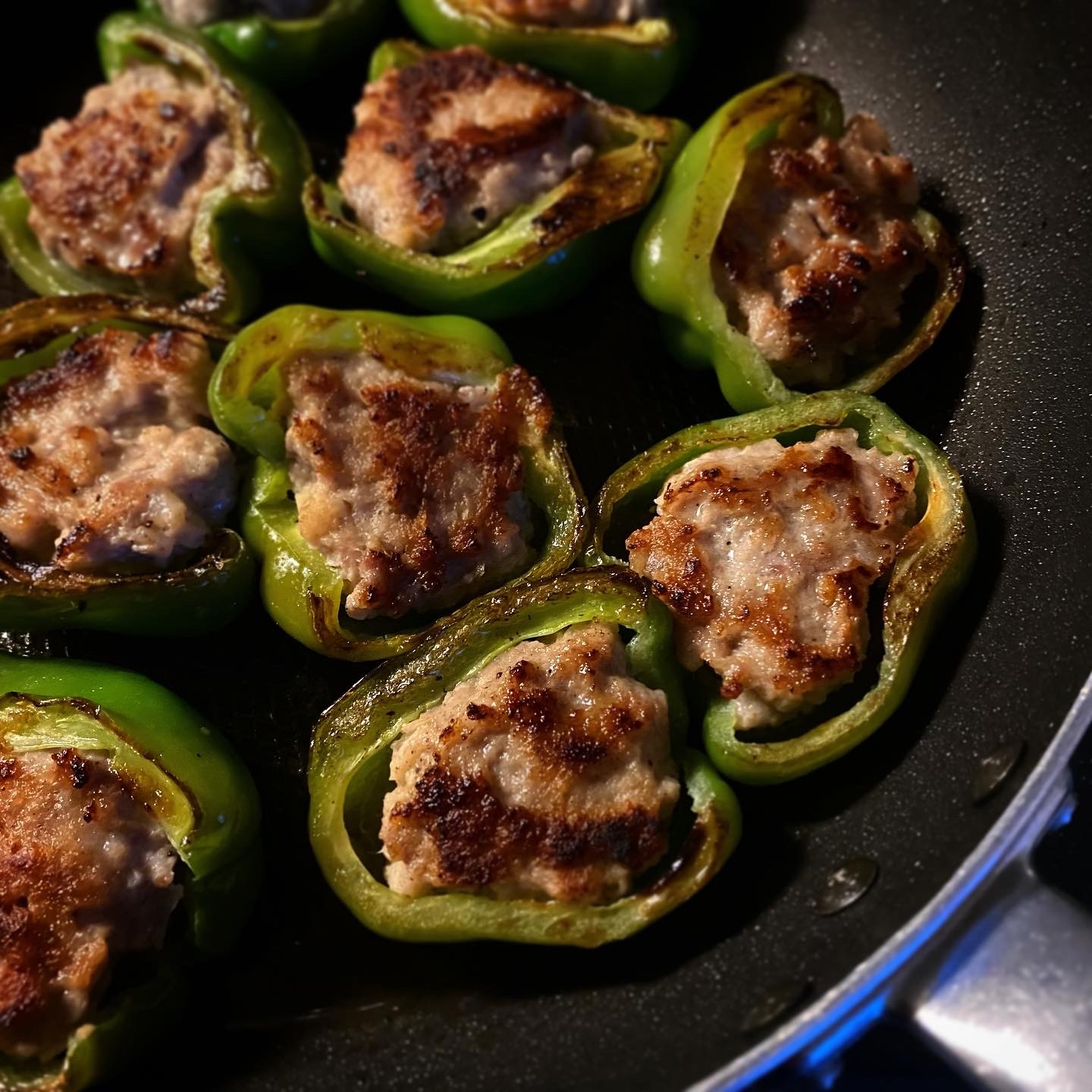 ピーマン肉詰めは本日代休だった息子が焼いてくれました。