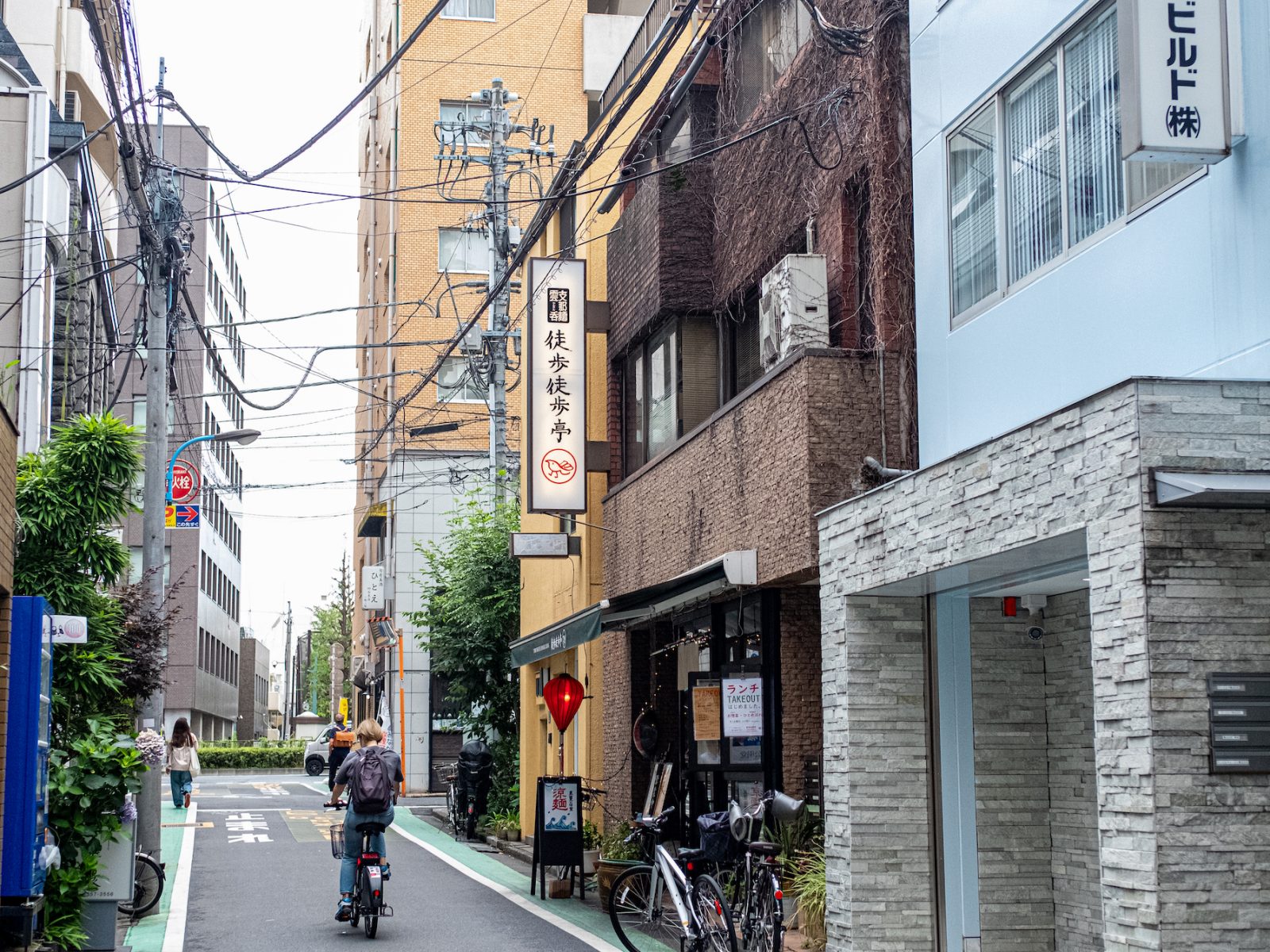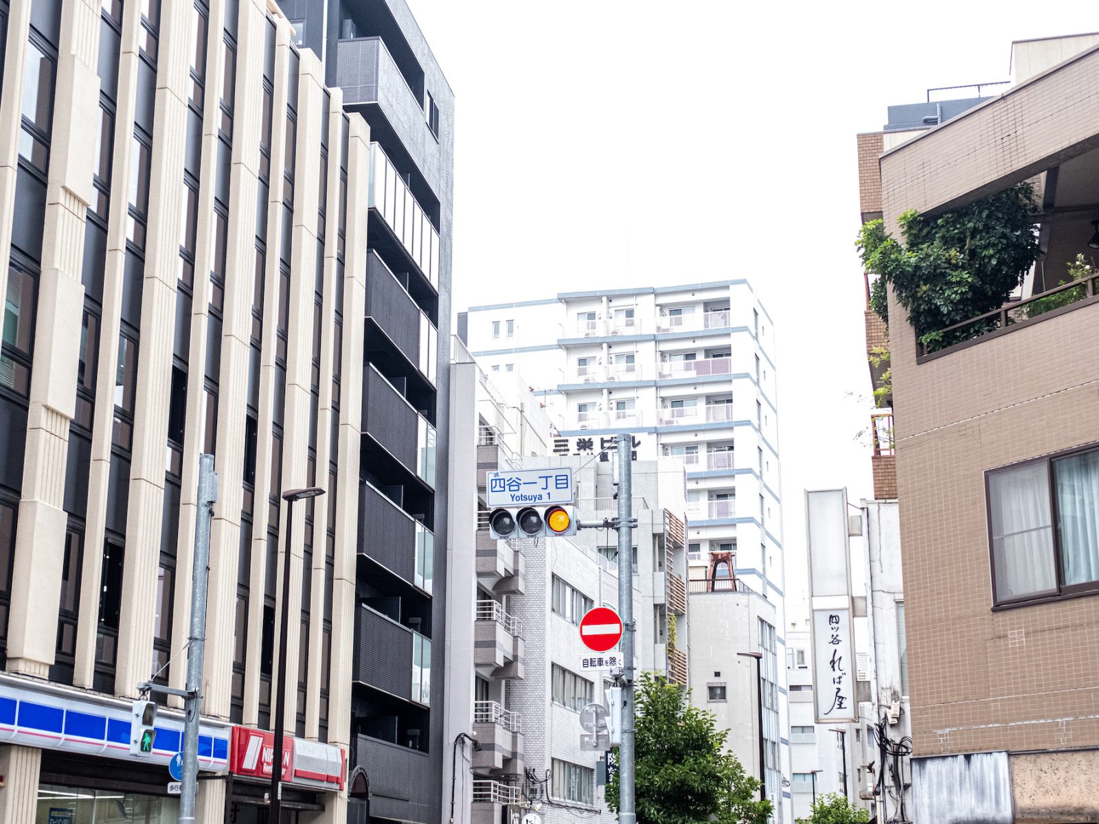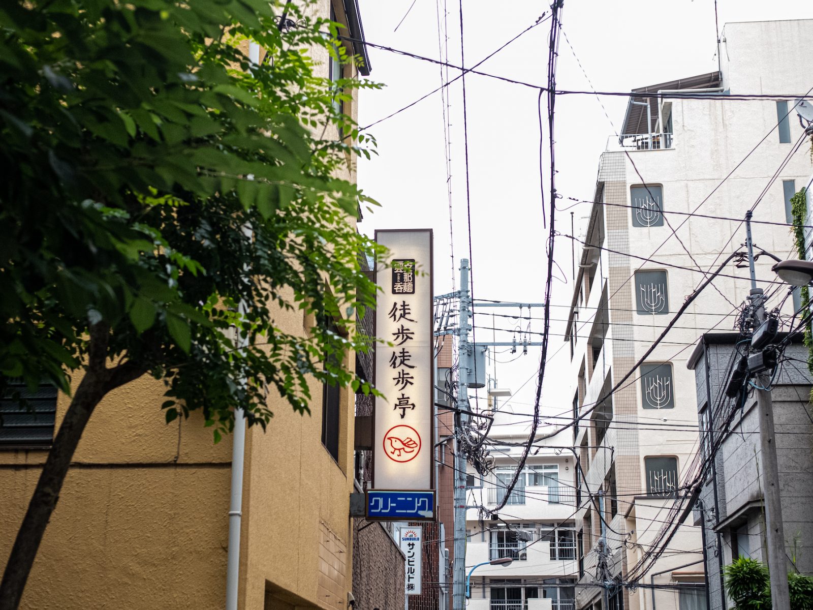 しんみち通りの途切れるところ。住所は四谷三栄町。少し歩いて右折をすると「徒歩徒歩亭」というかわいい文字が見えてきました。