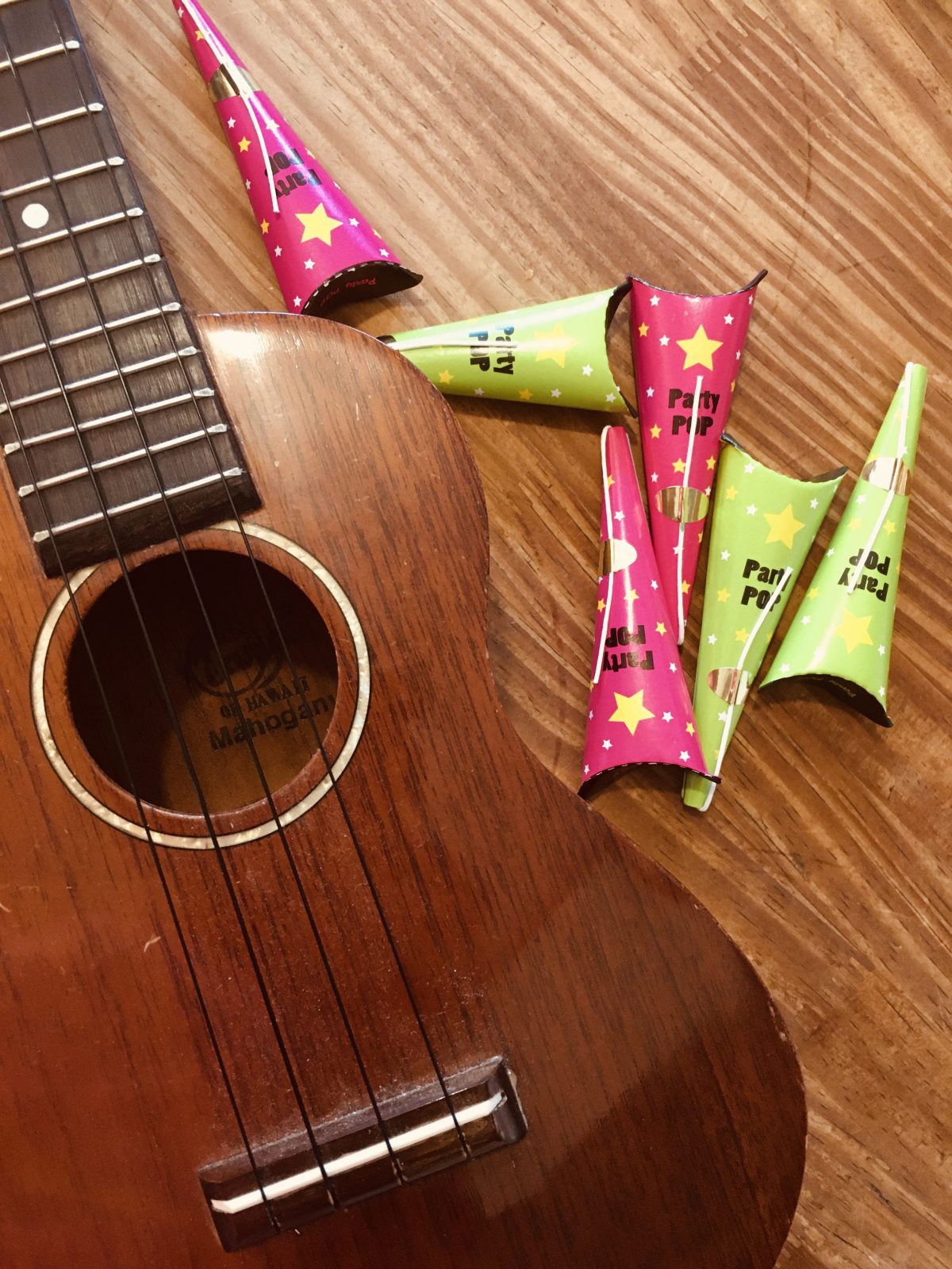 隠れ、暗闇の中でクラッカーをならすタイミングを何度も変更し、最近弾き始めたウクレレに