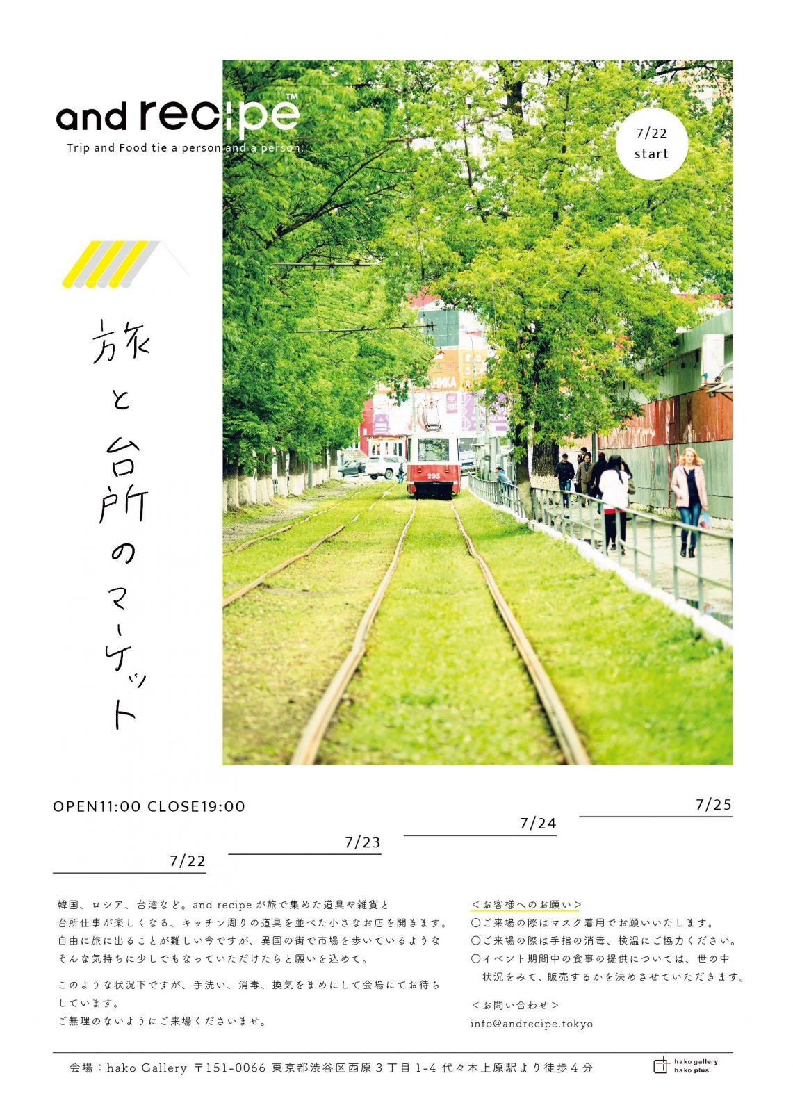 7月22日(木)〜7月25日(日)代々木上原にありますハコギャラリーで小さなお店を開きます。旅で集めた道具とキッチン周りの商品を並べた「旅と台所のマーケット」。お時間ございましたら、ぜひ遊びにいらしてくださいませ。