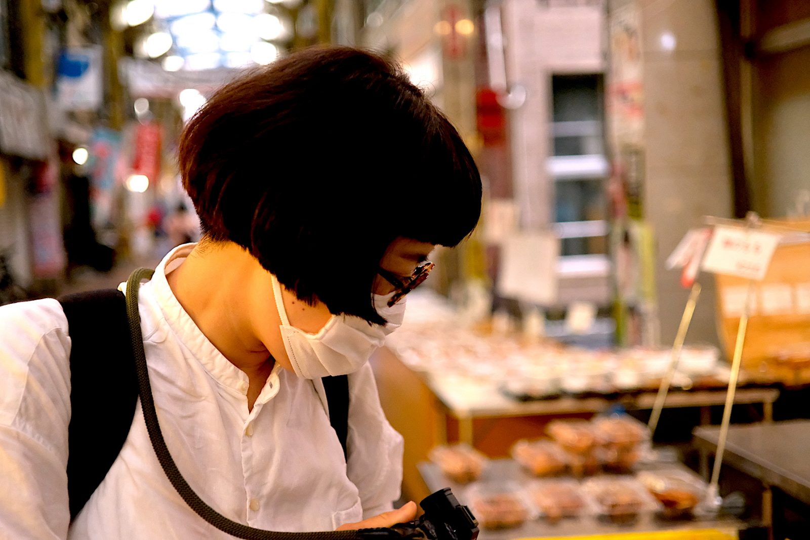 商店街のアーケードに入ってすぐ、高校生くらいの男の子二人組とすれ違いました。一人はおいしそうに焼き鳥を食べています。商店街で買い食い楽しいよね。