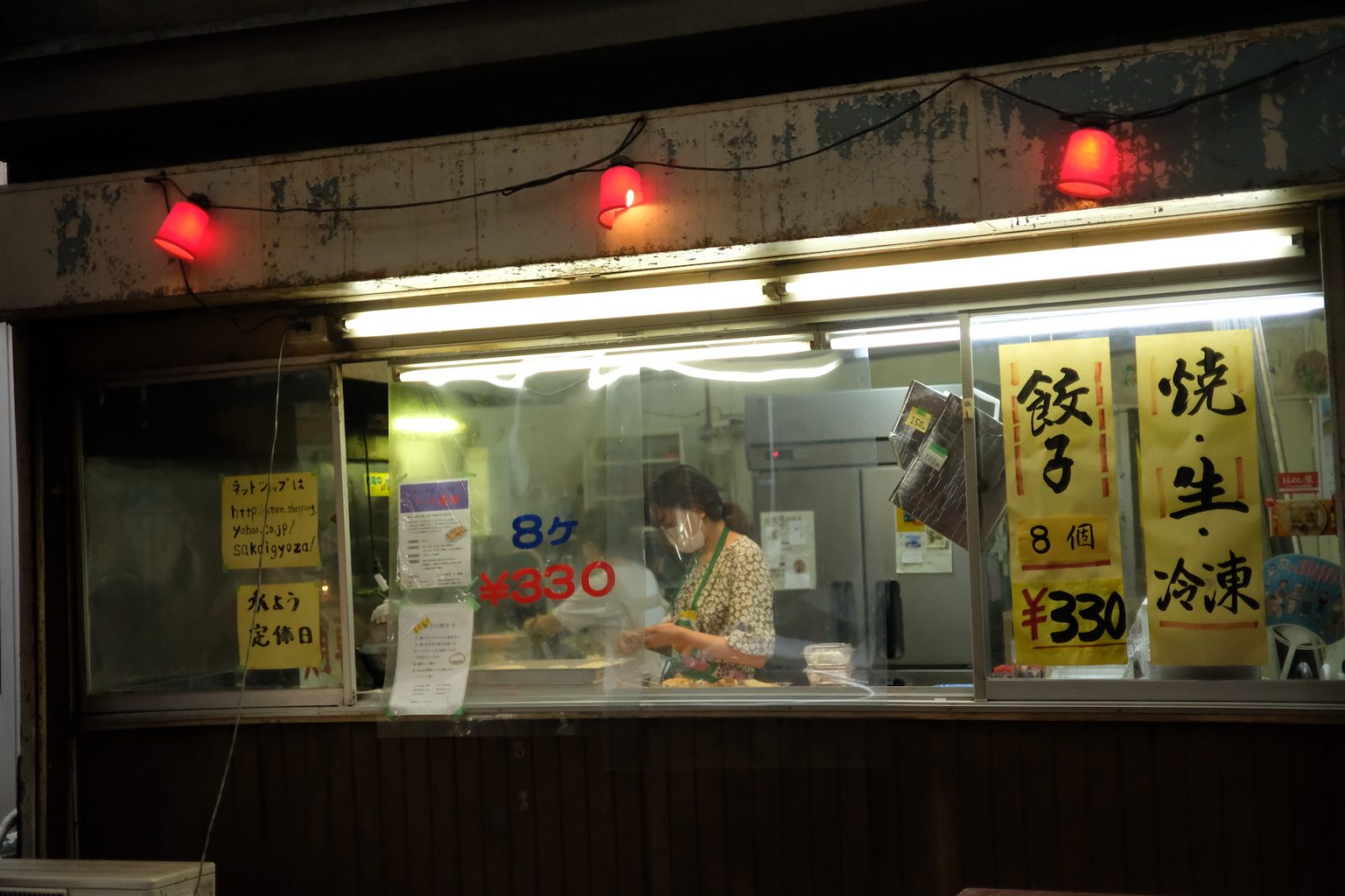 せっせと餃子を作っている姿になんとも惹かれて、絶対に買って帰ると決めていた「さかい食品」で最後のお買い物。生の餃子を2パック。お値段、8ケで330円也。野菜たっぷり、ニンニクのきいたおいしい餃子でした。