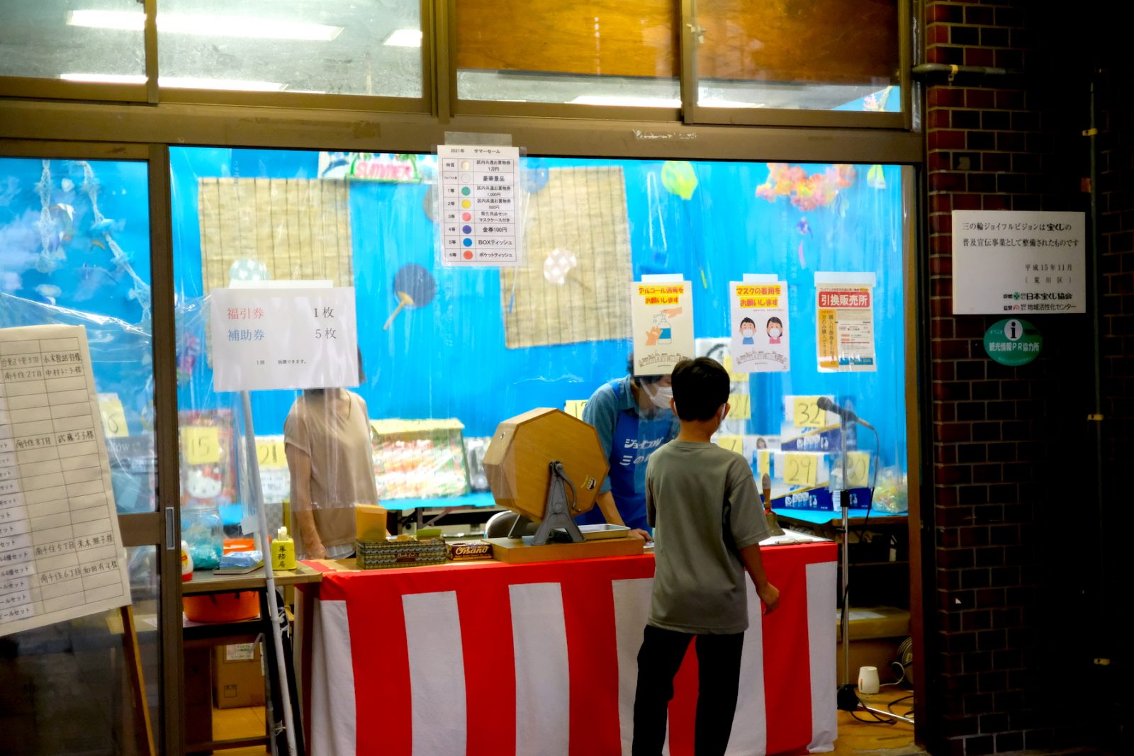 福引の会場では、小学生の男の子がガラガラを回しているところでした。いい商品当たりますように。小学生の背中に念じながら、少し離れたところで自分たちの番を待つ。