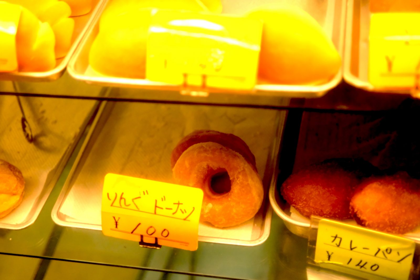 赤、黄色、緑、青。書体もかわいい看板「パンのオオムラ」。小学校の給食で出てきたアルミのお盆においしそうなパンが並んでいます。焼きそばのぎゅっと詰まったコッペパン、大きな豚カツがはみ出しているコッペパンに吸い寄せられてお店の前に立つ。あぁ、りんぐドーナツもおいしそうだ。なんでわたしはこんなにドーナツが好きなんだろ。