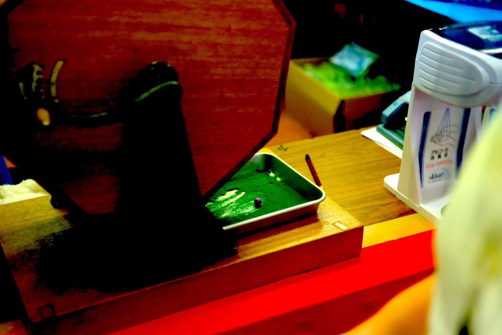 ガラガラの取手をしっかり握って、180度回す。ガラガラの箱の中で、色とりどりの玉がザザザーっと移動しているのが分かります。久しぶりの重みを掌から感じながら、最後にえいっと力を込めて、あと90度。