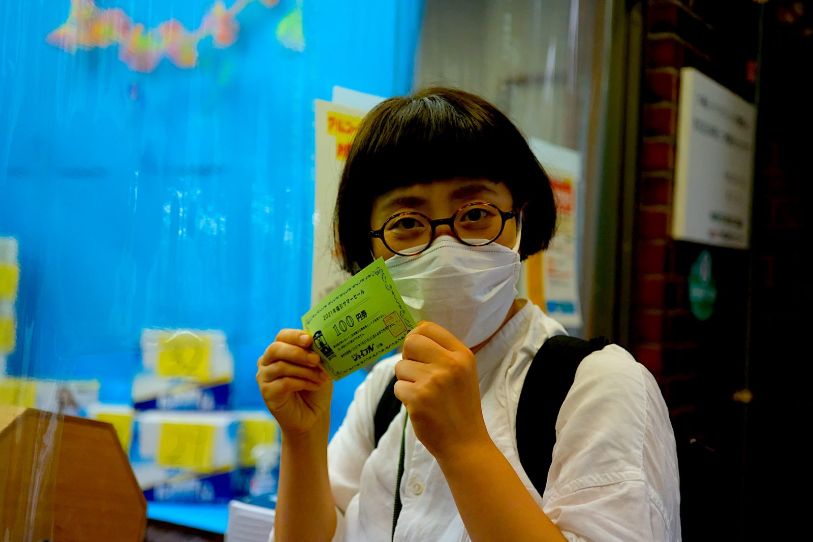 渡されたのは、100円の文字が輝く緑のお買い物券。やったー!なんだか、ちょうどいい嬉しさ。
