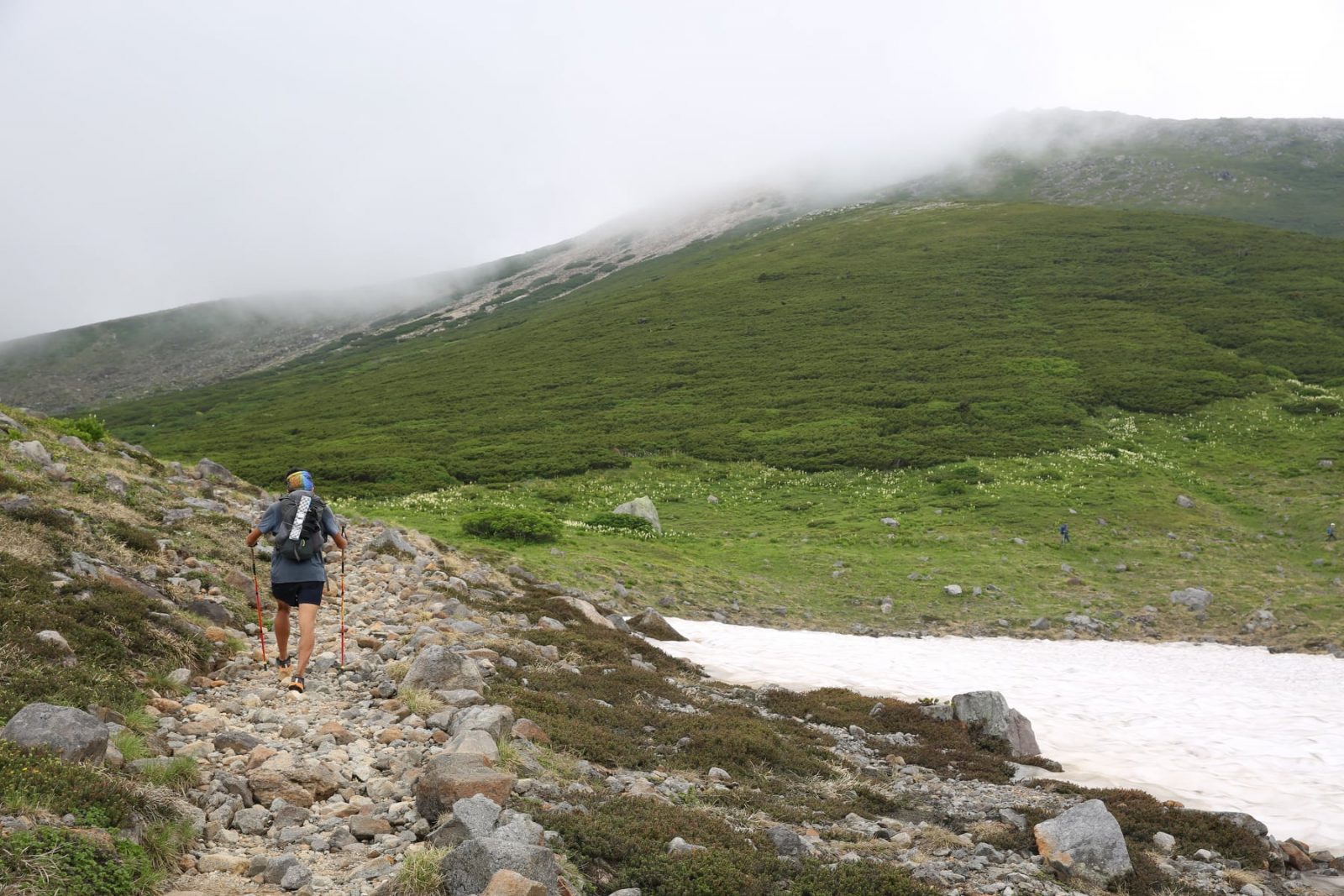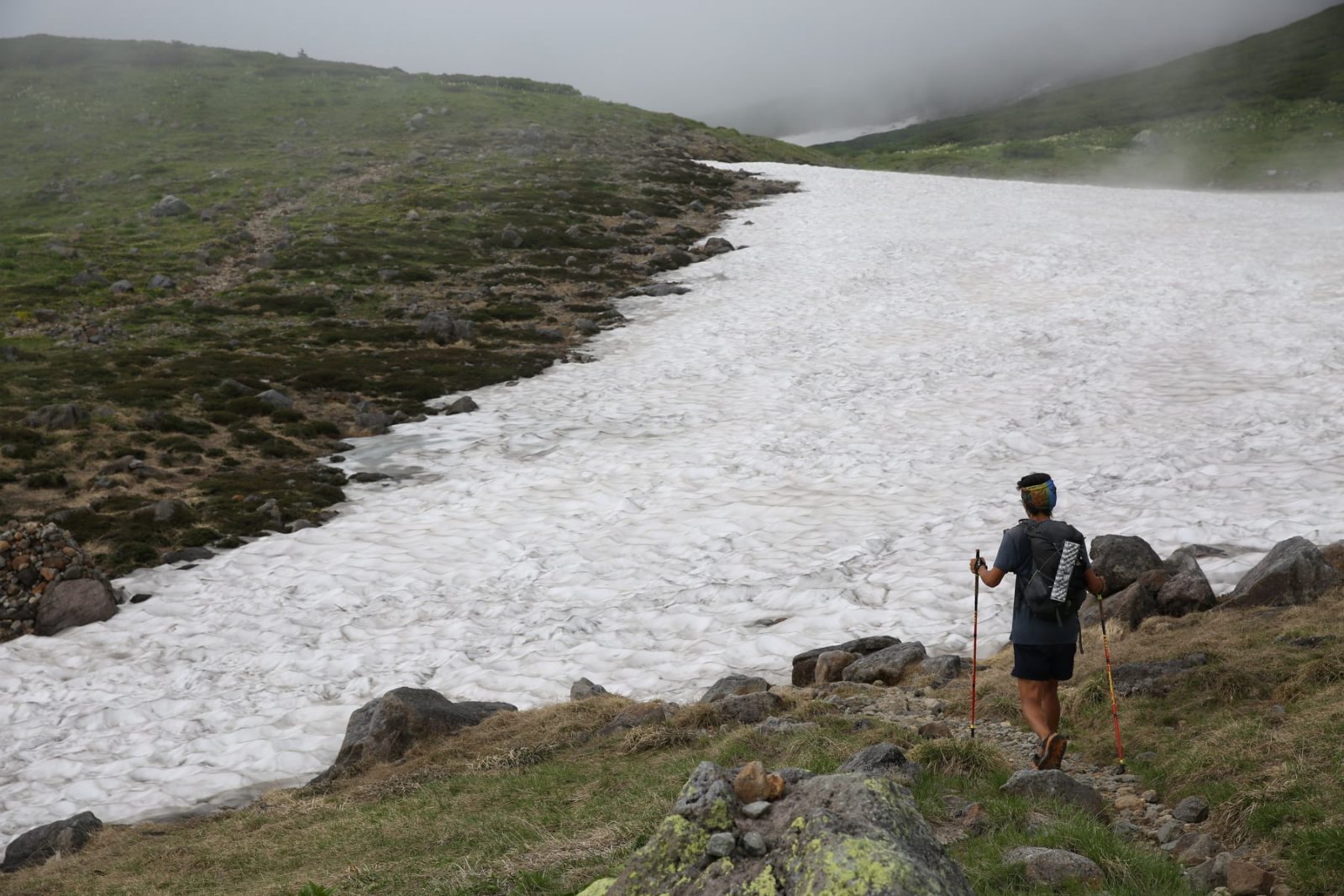 途中の残雪?なんかもあり、なのに短パン。ああ、すげえよ。