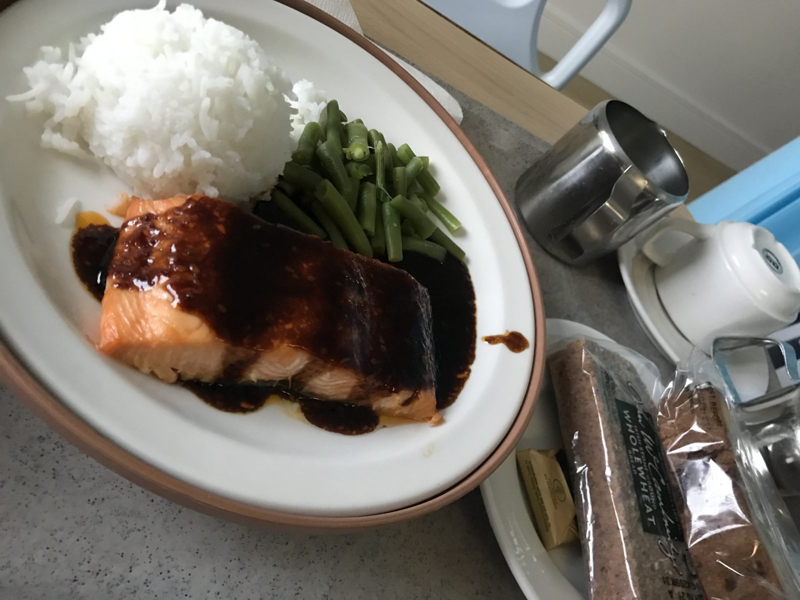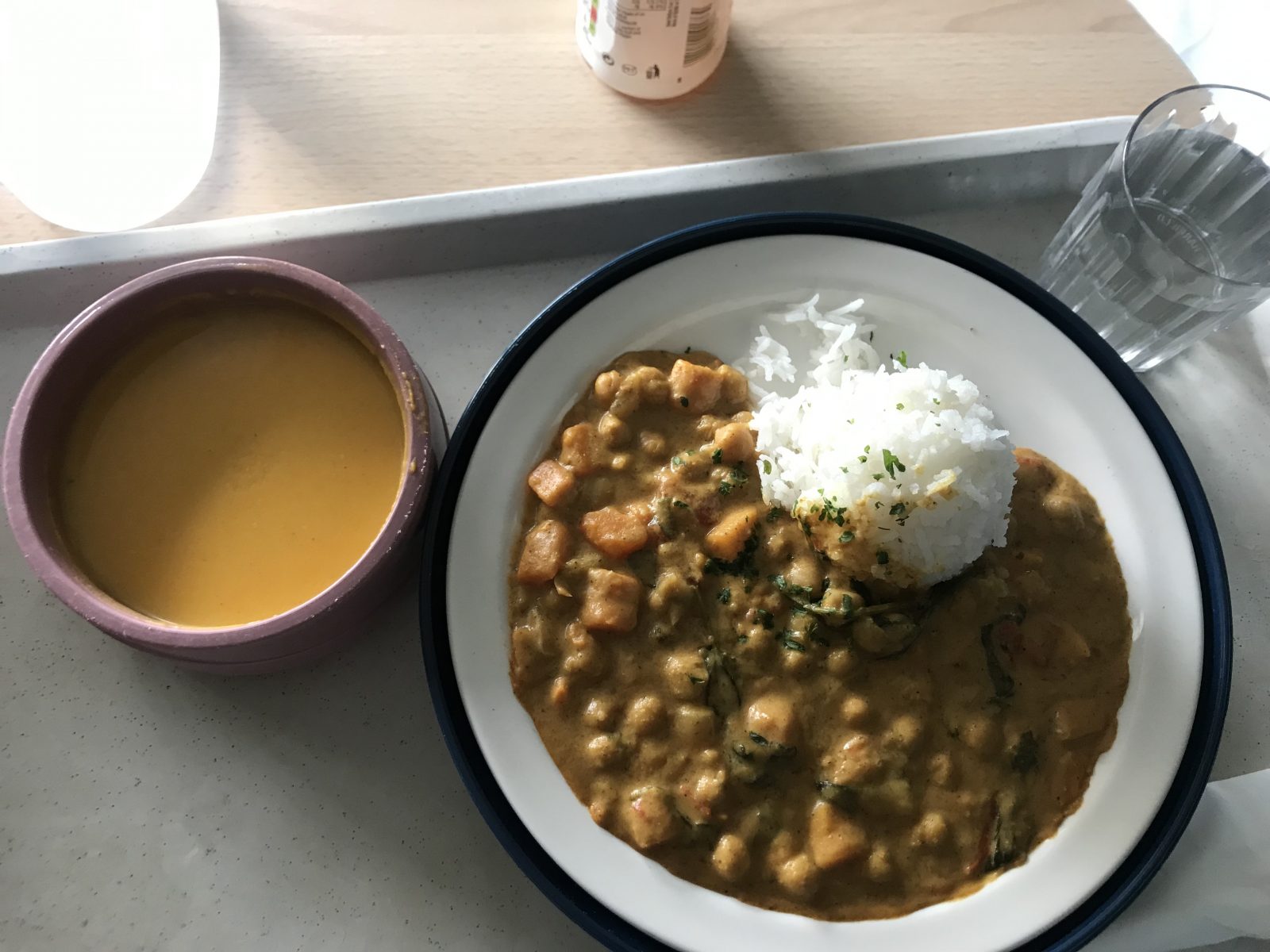 食事は1日3回、昼、夜は肉、魚、ベジタリアンメニューから選べます。