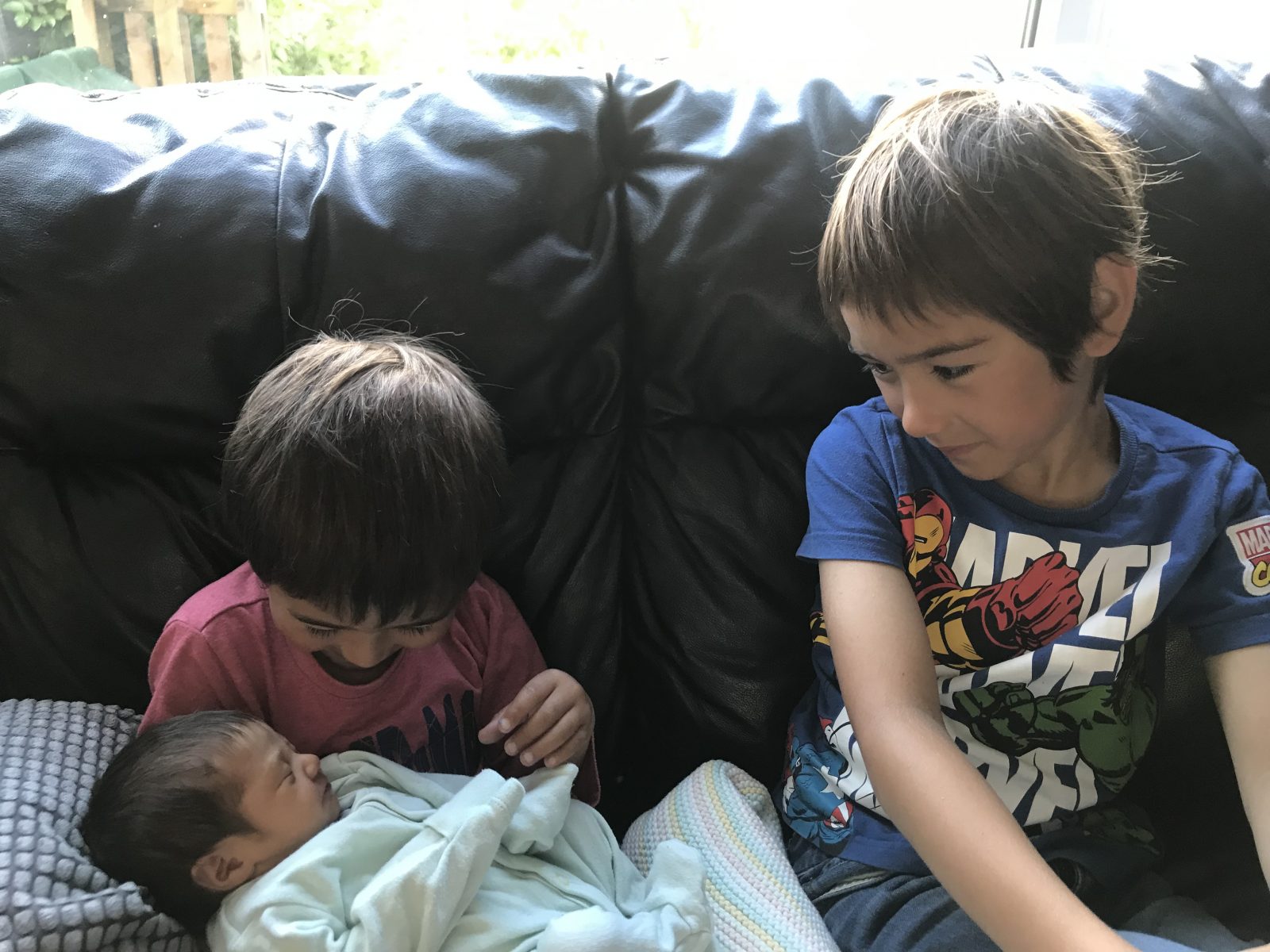 新しい家族を連れての帰宅。息子達は大歓迎。