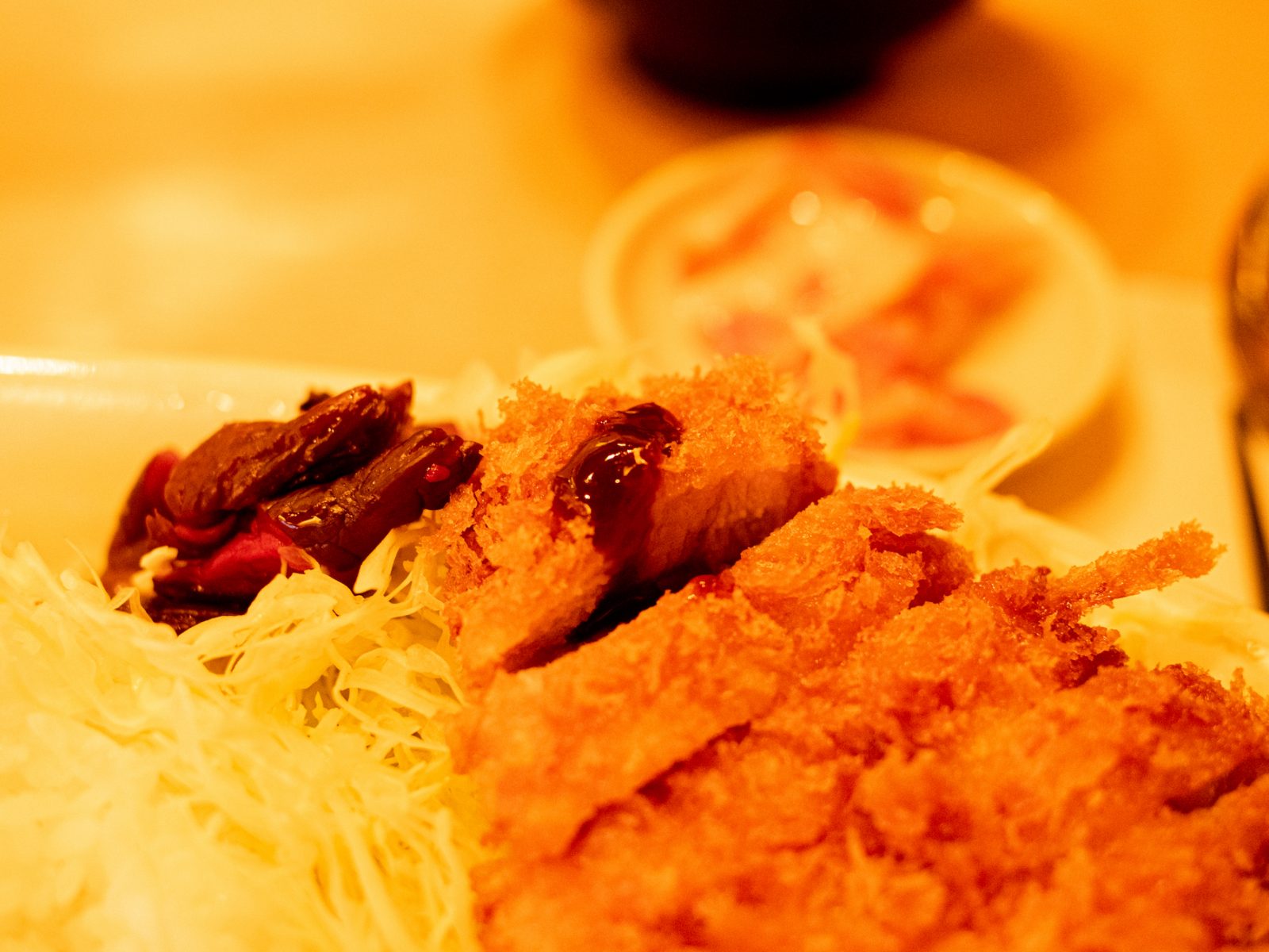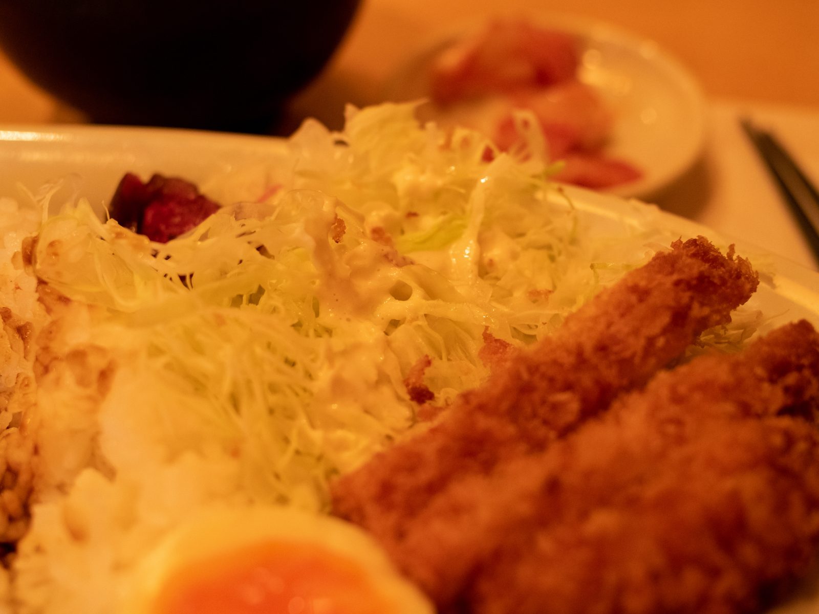 ドレッシングの容器のお腹をチュチュッと二回押して、豚カツの衣がクルトンのようになったキャベツの上にドレッシングをかける。お箸でガサっとすくって口に頬張ると、揚げたての豚かつであたたまった部分はやわらかく、かつに触れていない部分はシャキシャキと。ドレッシングの酸味で、また口内が変化した。
