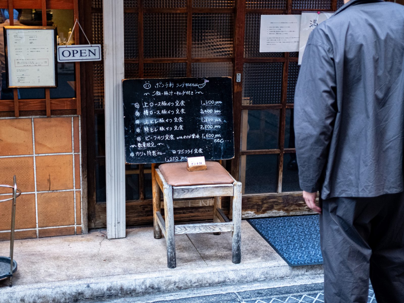 麺でさらりと済ませるのは惜しいと思ったばかりなのに、そば屋さんという選択肢もあるな。優柔を不断せずに、あちこち覗いていたら、小川町まで来てしまいました。ファミリーマートの先に、一人、二人、三人と並んでいるお店が見えます。順番がなかなか回ってこない、というほどでもなさそうだと、メニューをのぞいてみる。「上ロース豚かつ定食」「上ヒレ豚かつ定食」「ビーフカツ定食(わさび醤油)」。空っぽになったお腹が悲鳴をあげそうなメニューが並んでいます。神保町に来ると、どうしても頭にカレーが浮かんでしまう習性もあり。「カツと特製カレー」という文字に、しばし目線が停止。今日のお昼は、これだ。おいしそうなとんかつ屋さんのカツカレー。最高じゃないか。