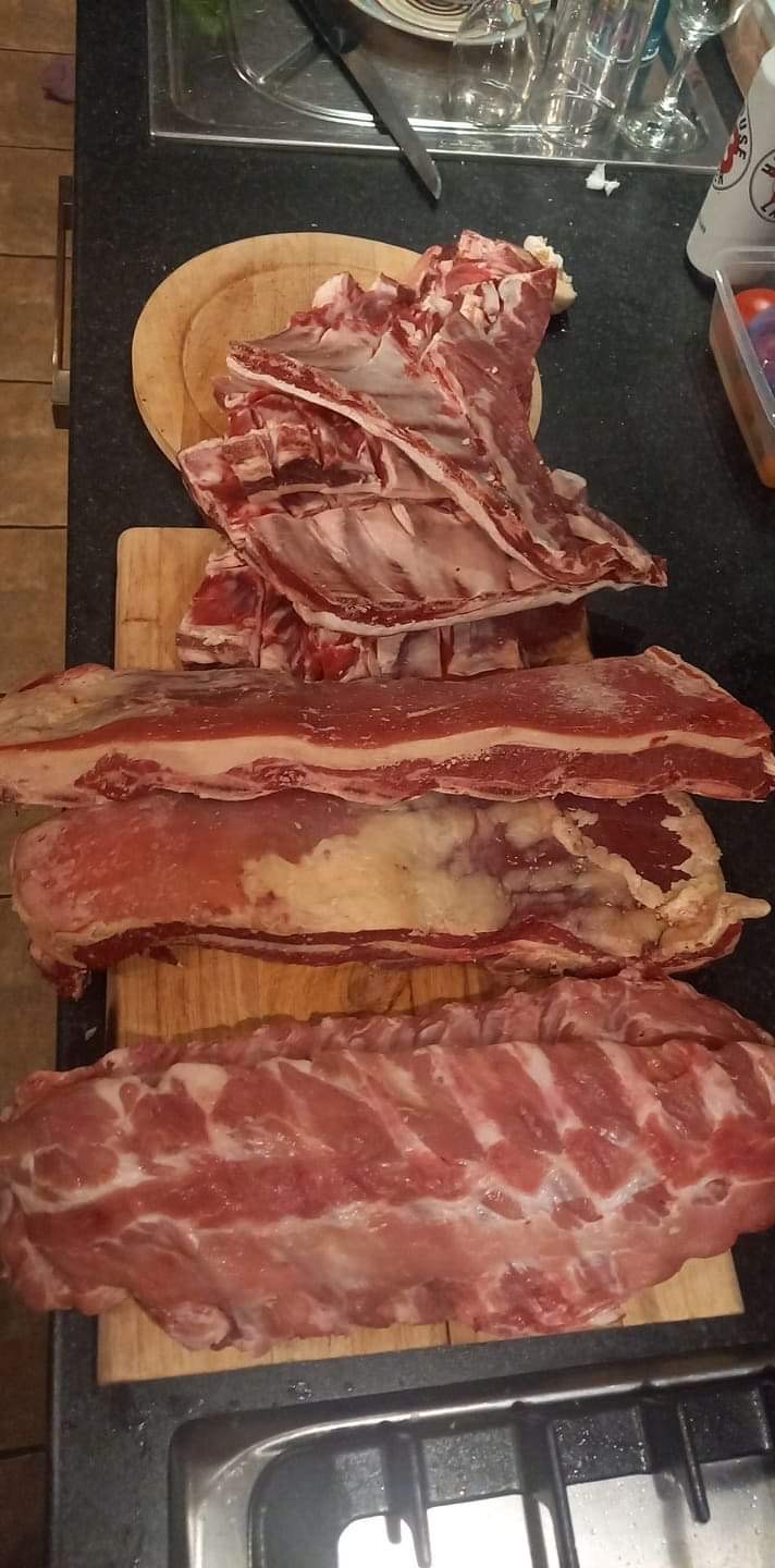 気合いの入った人は、わざわざシティのマーケットまでリブを買いに行き、牛、豚、子羊と3種の肉を買ってきたそう。