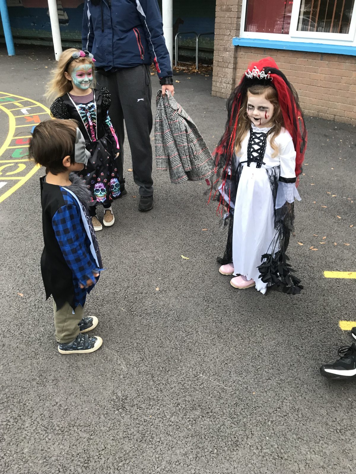 休暇前の金曜日の朝、学校にはがっつりフェイスペイントをした子、アメコミ系やゾンビ系のコスチュームなど気合いが入った子がぞろぞろやって来ます。