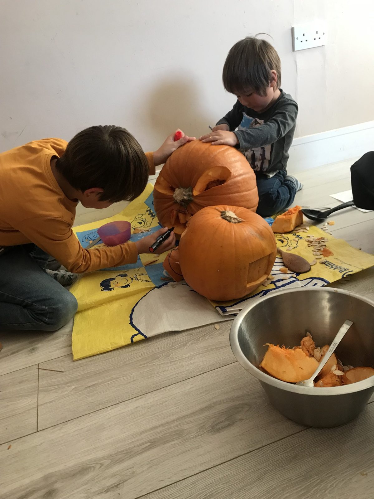 かぼちゃのジャックオランタンの切り方は、息子達がYouTubeで日々研究していて。