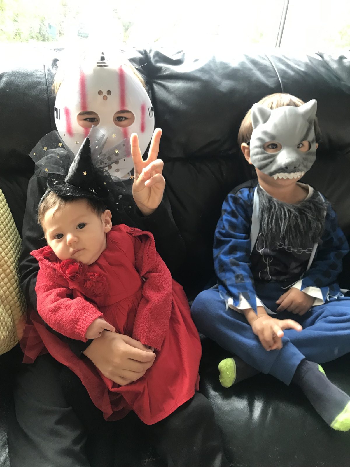 私は息子1号と満3ヶ月の娘をベビーカーに乗せて、trick or treatに行く事に。