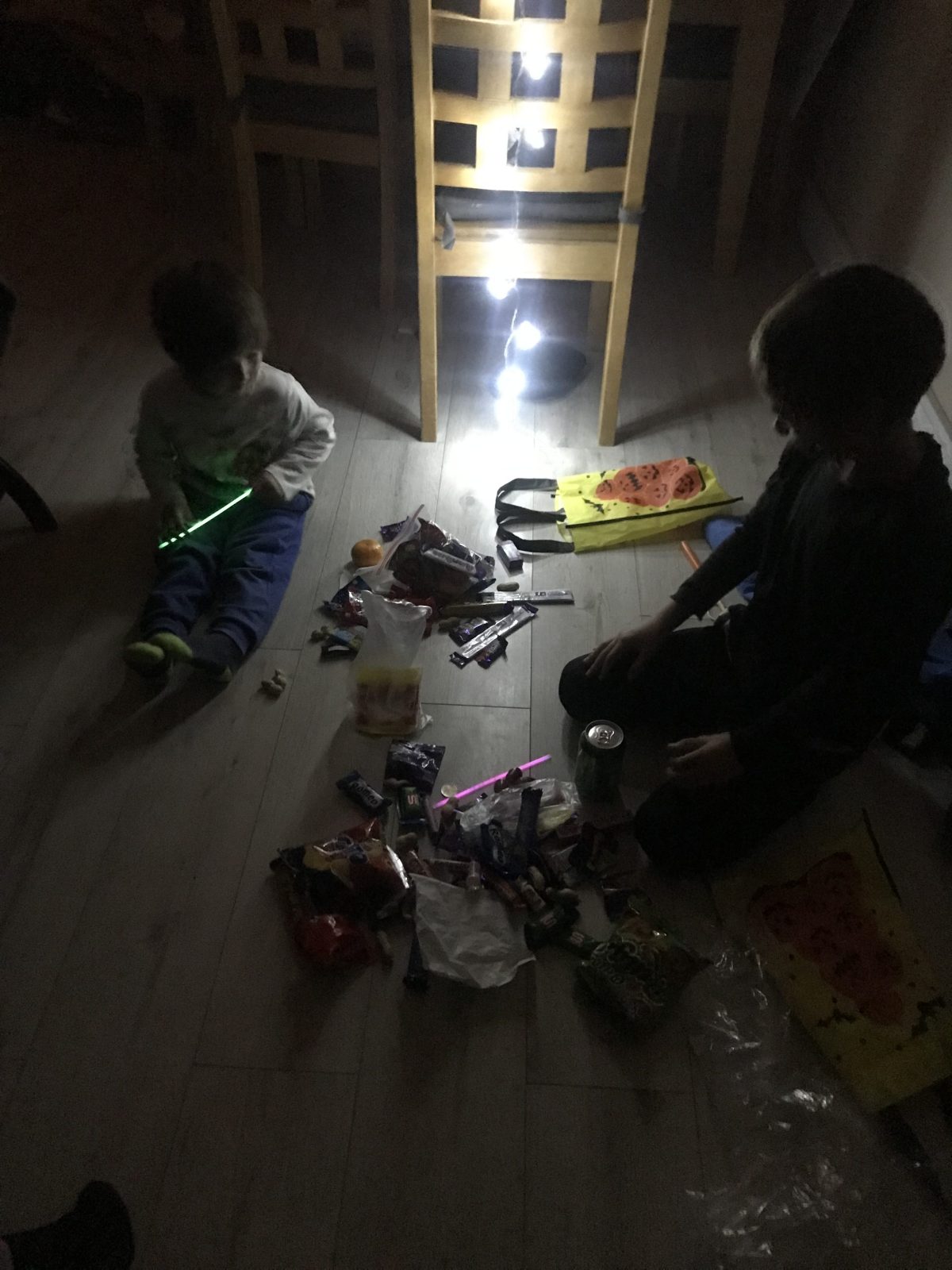結果、蝋燭の明かりの中で息子2号は夫と留守番。