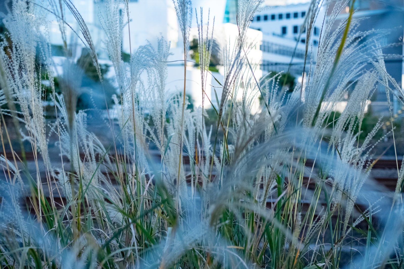 原宿駅から渋谷まで。JRの線路沿いに歩くと、まだ名残惜しい秋の気配。すすきの穂が小さな風に少しだけ揺れている。