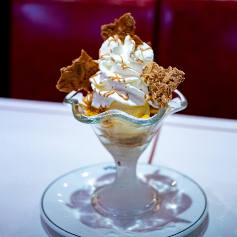 キャラメルソース、生クリーム、アイスクリーム。パフェの両側に刺さったフロランタンが、チアガールのぽんぽんのように見えてくる。あと一息、がんばれと応援してくれている?そんな風に見えてくるのは、だいぶ疲れている証拠のような気もするけれど。「そんなことより私を楽しめ」とバニラビーンズたっぷりのアイスクリームが、スプーンを動かす手を止めないように、少しずつやわらかく溶けていく。