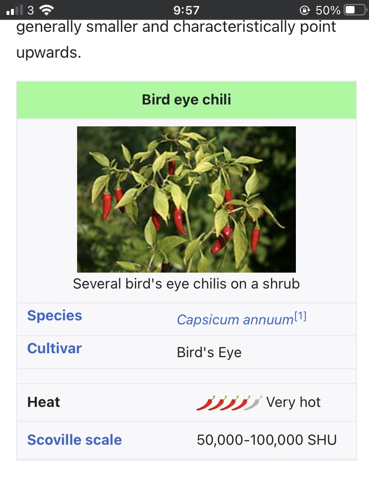 ボトルを見るとbirdseye chilli と書いてあり、調べたら辛さレベルが高い唐辛子だと判明。