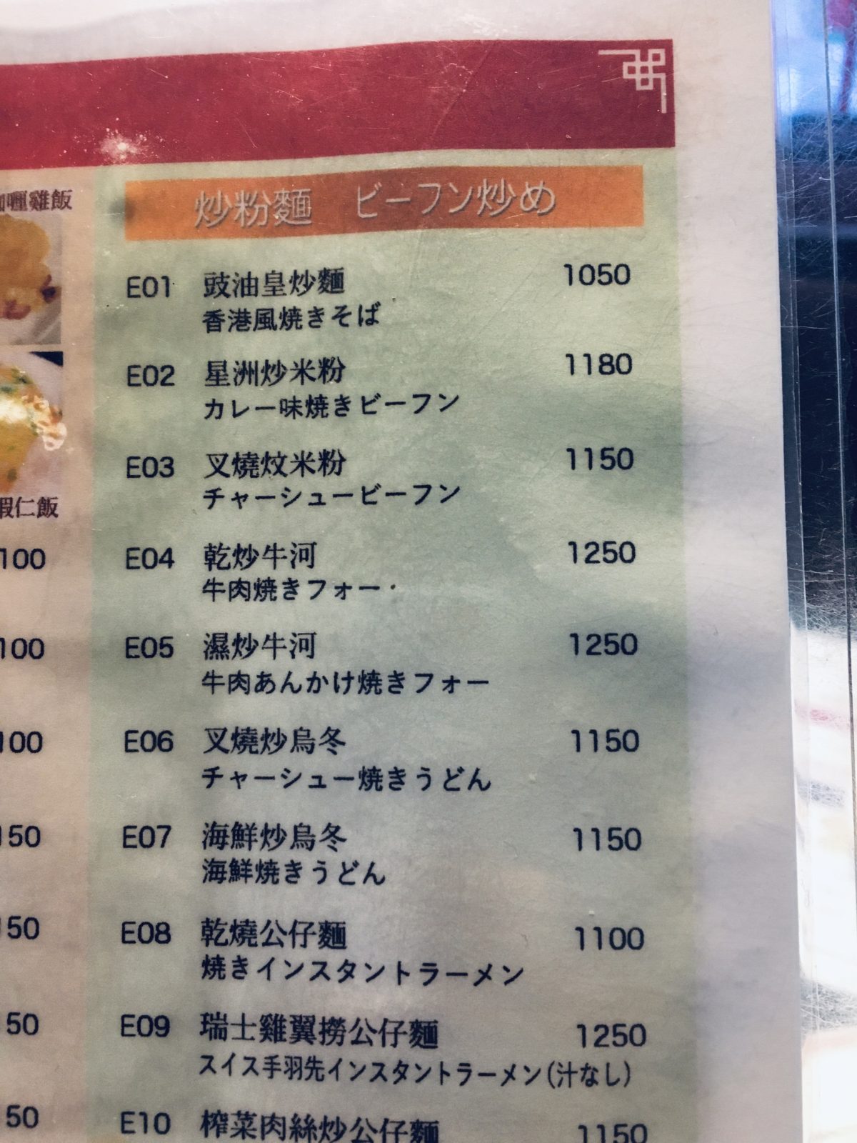 麺!しかも焼きそば一択!その中でも一番上の「香港風焼きそば」。