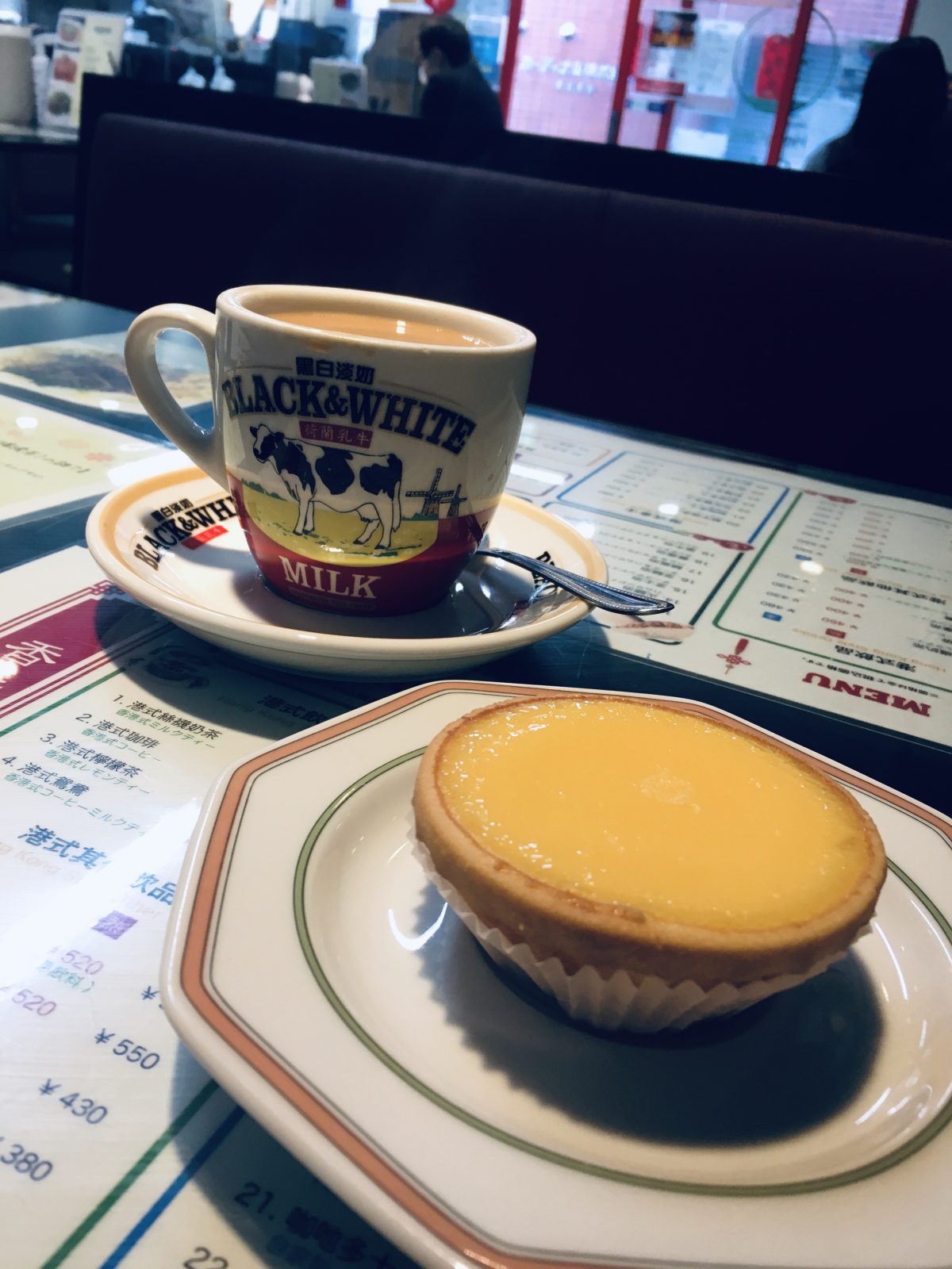 あとは最初に目に飛び込んできた思い出のドリンク鴛鴦、あとデザートにエッグタルトもオーダー。