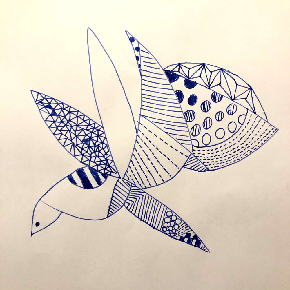 アイキャッチは、ミュージックビデオの鳥をに書いてみました。羽が多いなぁ、、、、、