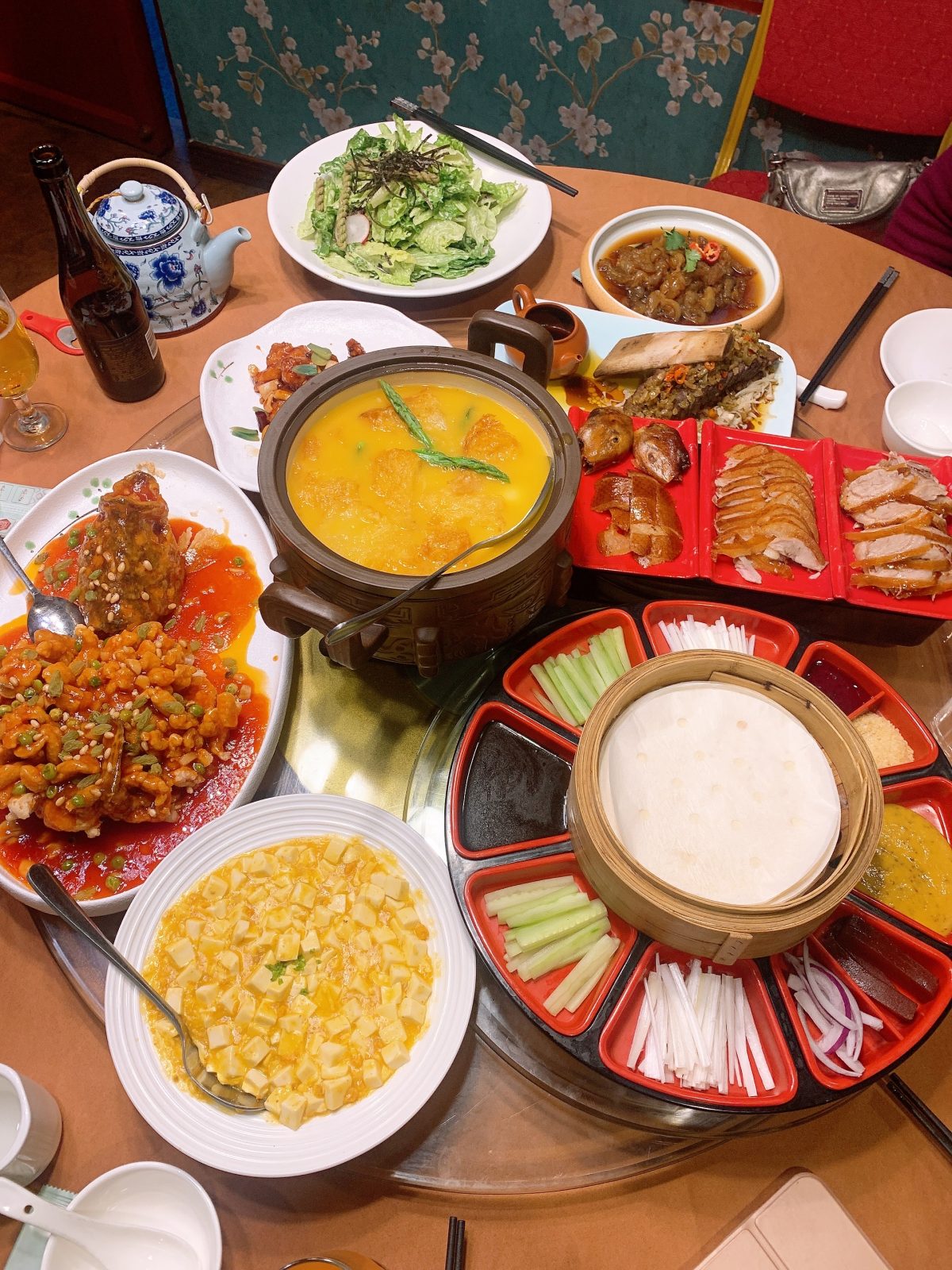 すぐ返信が来て、レストランに居るよーと北京ダックの宴席写真を送ってくれた。