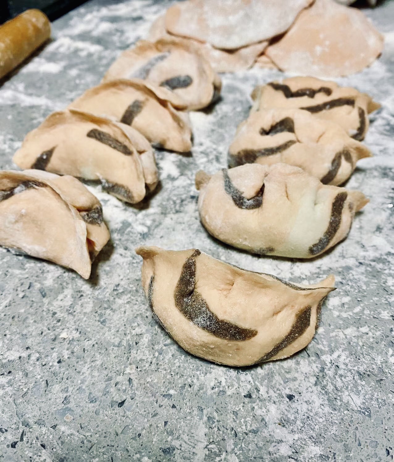 「虎皮餃子」と言うんだとか。このアイデアと夜中から作る思う意気込みに拍手。