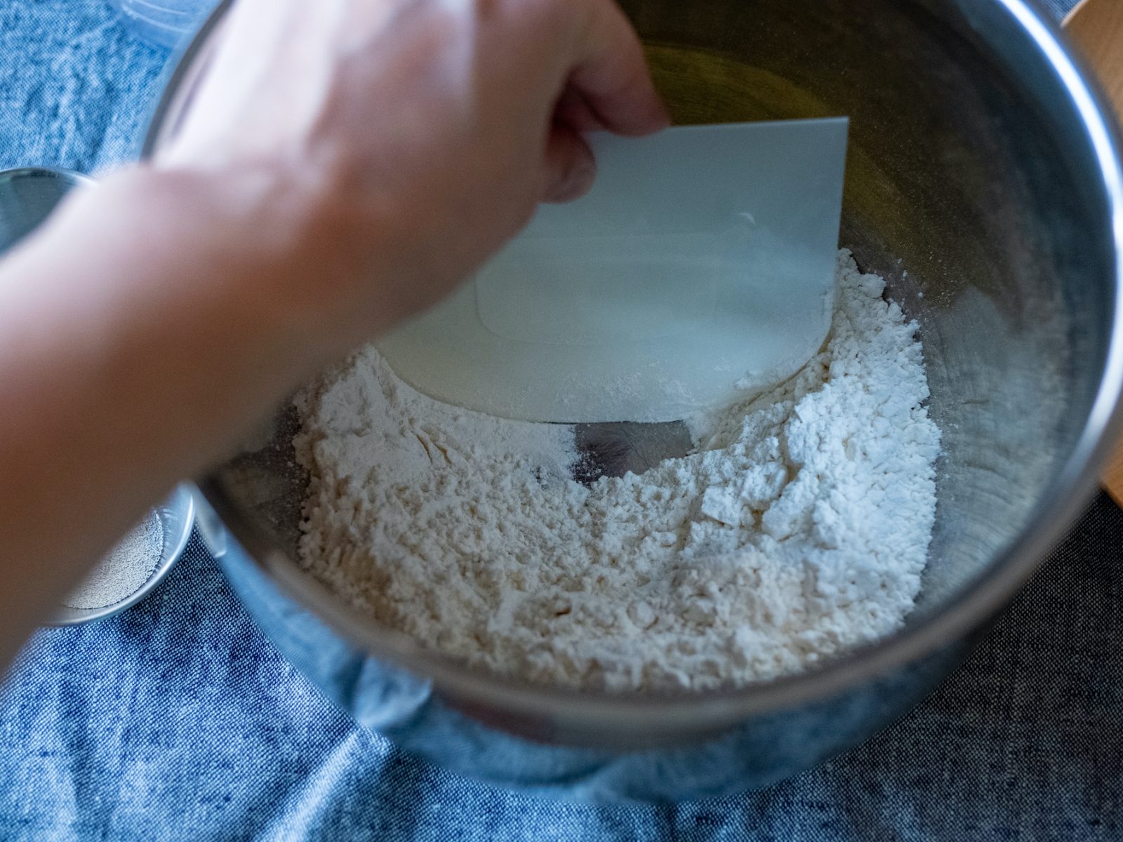 何気なしに見ていたYouTube。おすすめで流れてきた、石垣島に住むMochaさんというご夫婦のパン作りの動画。何層にも重なる青のグラデーションが美しい海の映像を、時折挟みながら。自ら焙煎されたコーヒーを入れながら。旦那様の手からおいしそうなパンが次々と生まれていく。材料を計量する。ボウルに粉を合わせて、真ん中にあけた溝に水を注いでドライイーストを入れる。粉の上に塩をふりかける。ドライイーストをカードで水に溶かしたあと、粉と合わせていく。生地を20分休ませて、カードで生地を底から返すを数回。また20分休ませる。3回繰り返したら、生地を丸め直して一次発酵。生地が二倍に膨らんだら、生地を切りわけて成形。布どりして発酵30分。クープ と呼ばれる切れ目を入れて、温めておいたオーブン250度で焼く。スチーム機能のあるオーブンならスチームで8分、オーブンに切り替えて8〜10分。バケットを焼く工程の全てがおいしそう。そして、粉、発酵する前の生地、一次発酵してぷるぷるに膨らんだ生地、成形された棒状の生地、火が入ってクープがぱりっと開いていくもうすぐパンの状態も。全ての工程の素材が愛おしく見えてくる。屋台のお母さんたちの所作のように、全ての工程が美しい。