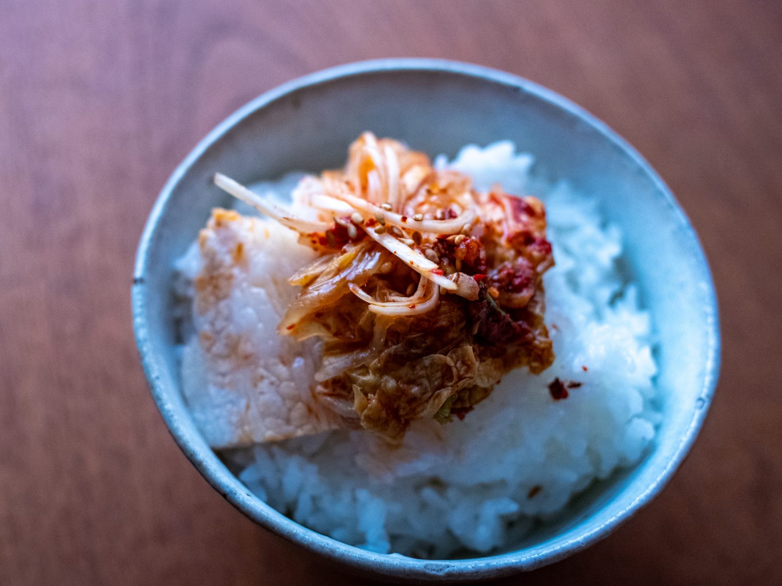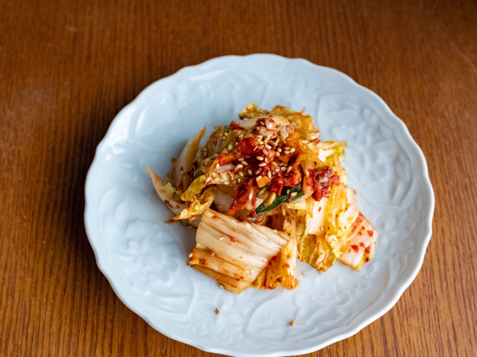 まだ白菜の歯応えがしっかり残る浅漬けのキムチ。砂糖が入っていないレシピだからか、口の中にまったり残る後味がなく、すっきりとしたきれいな味。最初にピリッと辛さがきて、白菜を噛む度に野菜の甘さがしっかり伝わってくる。初めて大事に作ったキムチだから、という加点ももちろんあるけれど、しみじみ幸せな味。