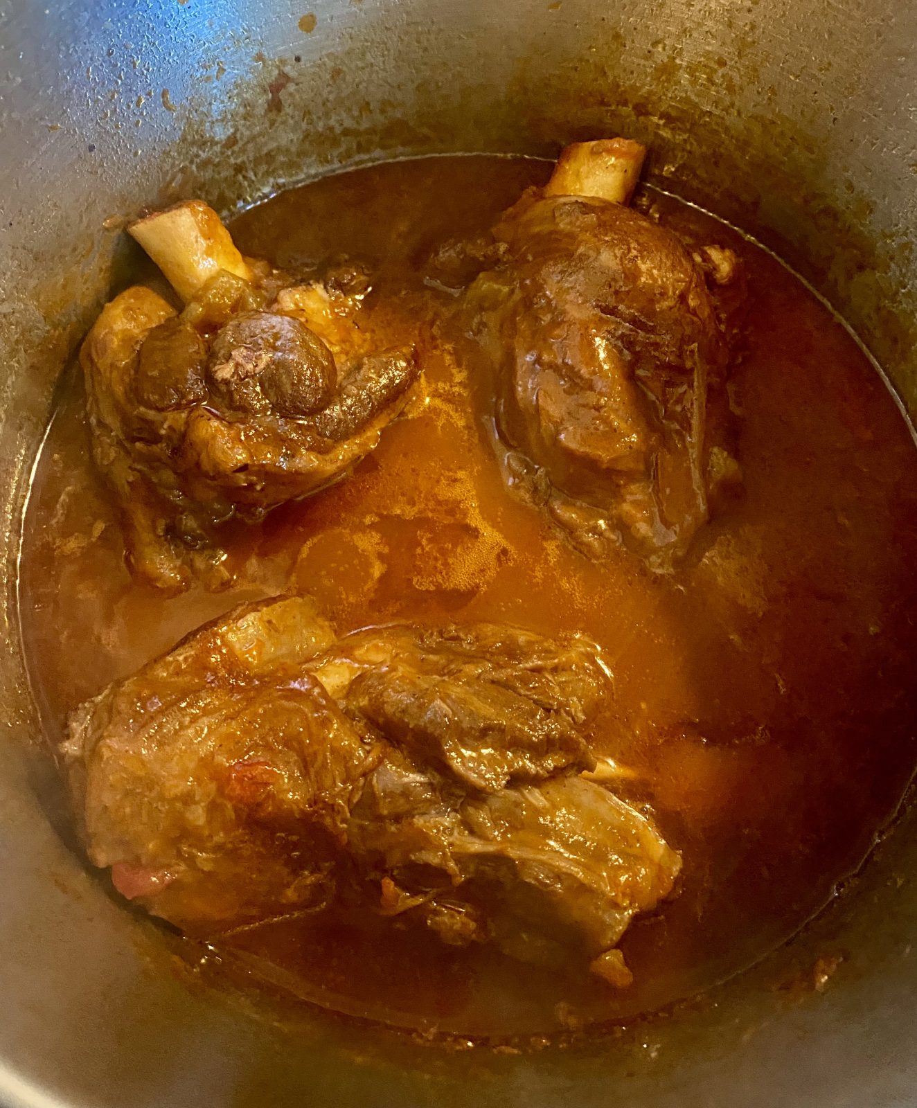ラムのスネ肉煮込みも圧力鍋で20分煮るだけでお肉はホロホロに柔らかく。