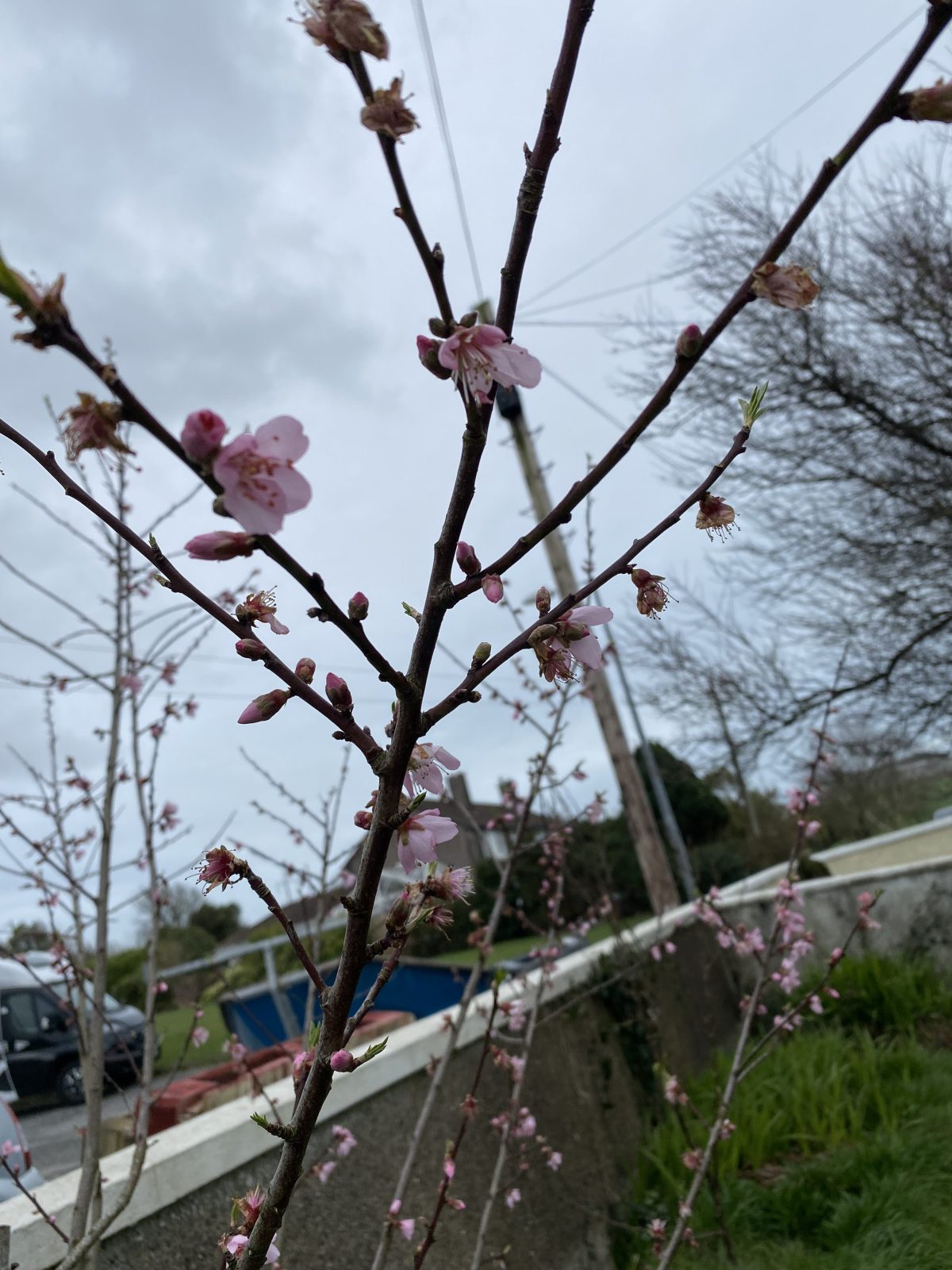 庭のアーモンドの花は満開寸前だったのに見事に散りました。