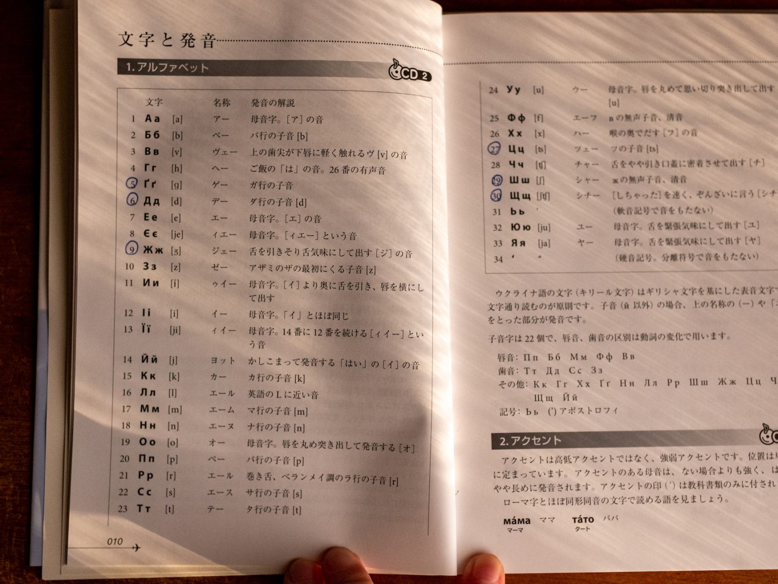 ひとつひとつ見ていくうちに、ウクライナ語の世界に引き込まれていきます。勉強する前は記号にしか見えなかった文字が、ちゃんと音で飛び出してくる。新しい言語を学ぶ時の醍醐味です。