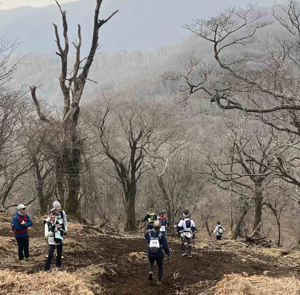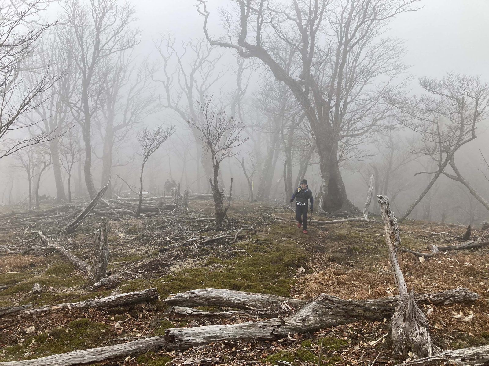 僕はコースを逆走しながら、選手の様子を見回る役目でした。担当の区間は、九州の背骨である脊梁山地。熊本と宮崎の県境に連なる山域です。とても山深く、登山者が気軽に行けないので、ルートが不明瞭なエリアもあります。リタイアしようにも下山できる場所は限られ、水場もわずか。