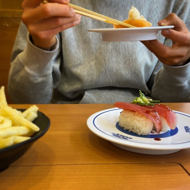 ってことで、今晩はキムチ鍋の準備をしていたけれど、彼の食べたいものを食べに行こう!という夫の案で、近所の回転寿司へ。