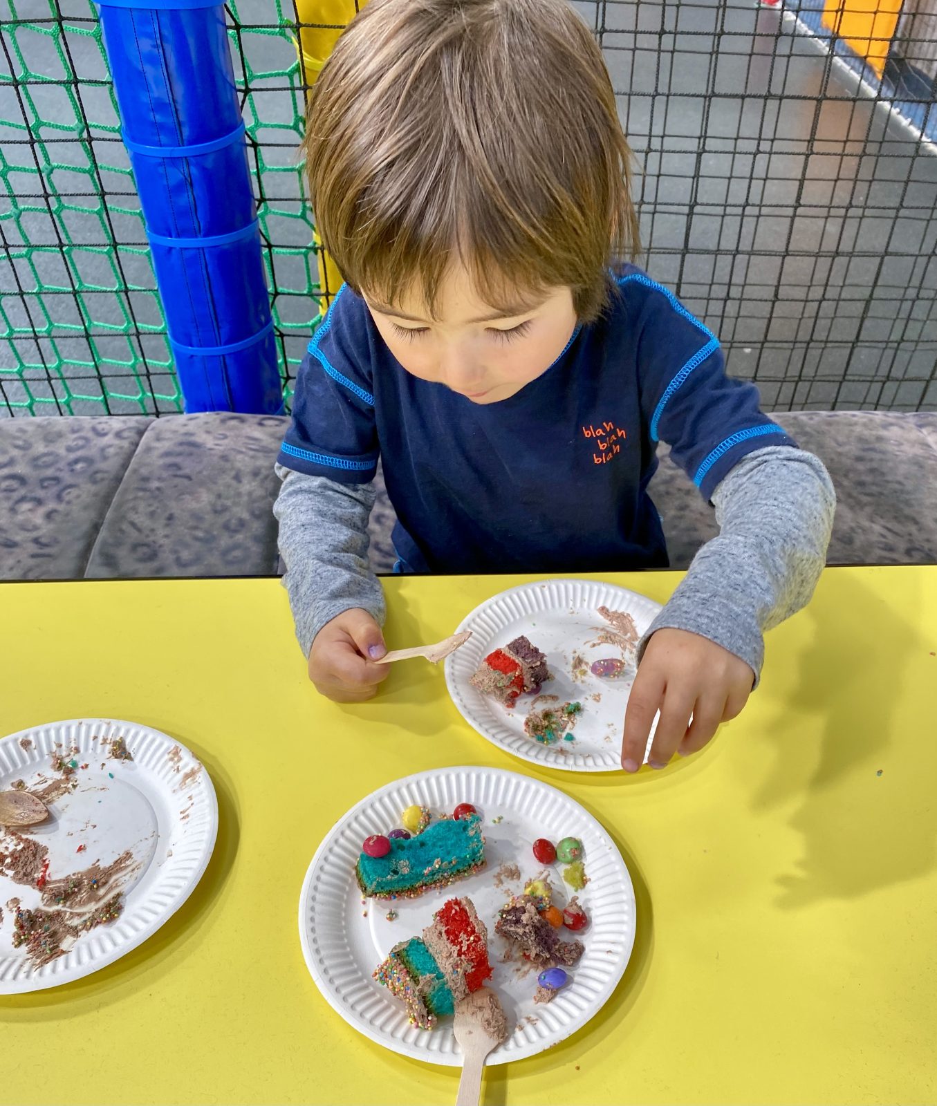 息子1号は久しぶりのインドア施設に興奮して2時間みっちり楽しんだけれど、招待された息子2号は初めての場所に怖気づいてあまり走り回らず。
