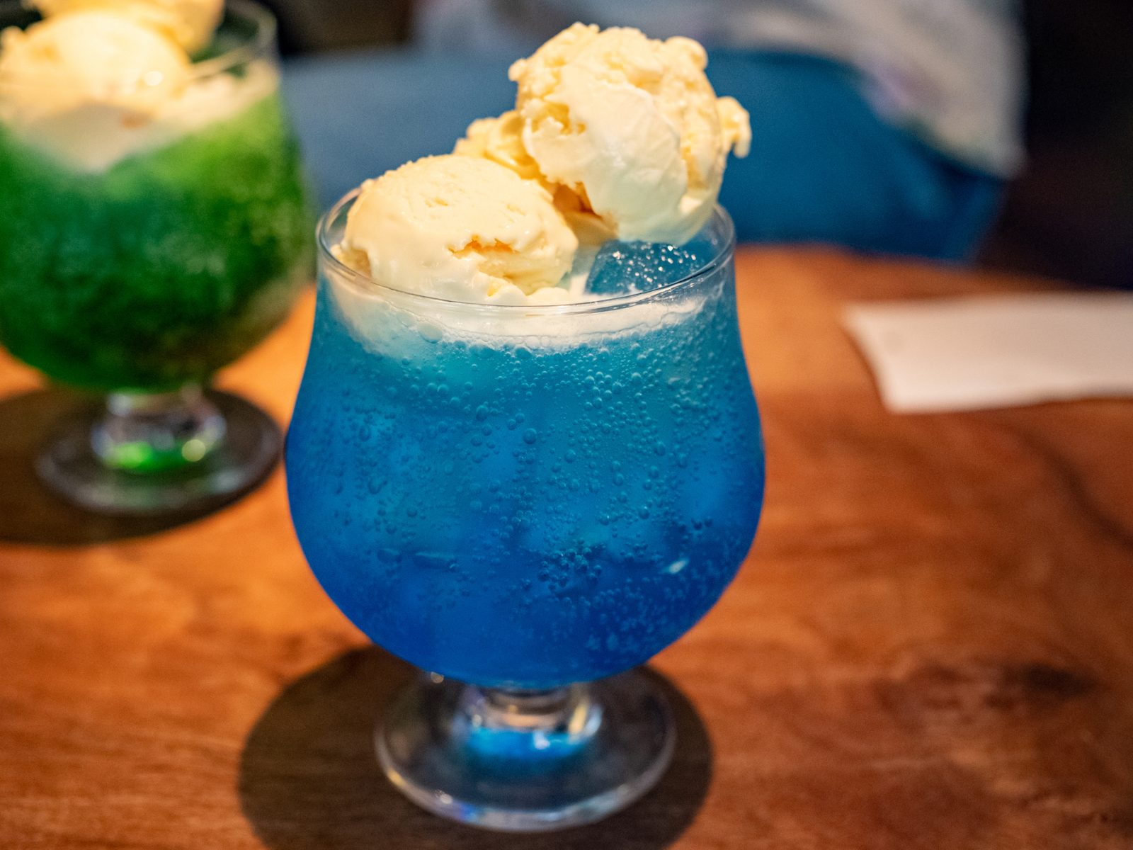 アイスクリームがソーダ水に溶け出して、クリームになっている部分をちゅっと吸う。ソーダの容積を減らさないと上にのったアイスクリームが今にもおっこちてしまいそう。氷とアイスの接地面がシャリシャリと固まっていく。ロングスプーンの先で、氷についたシャリシャリを慎重に掬うと森永のラムネバーのような味。バニラアイス、ラムネバー、ブルーハワイのソーダ水。3つの味を行ったり来たりする回数も通常の三倍。