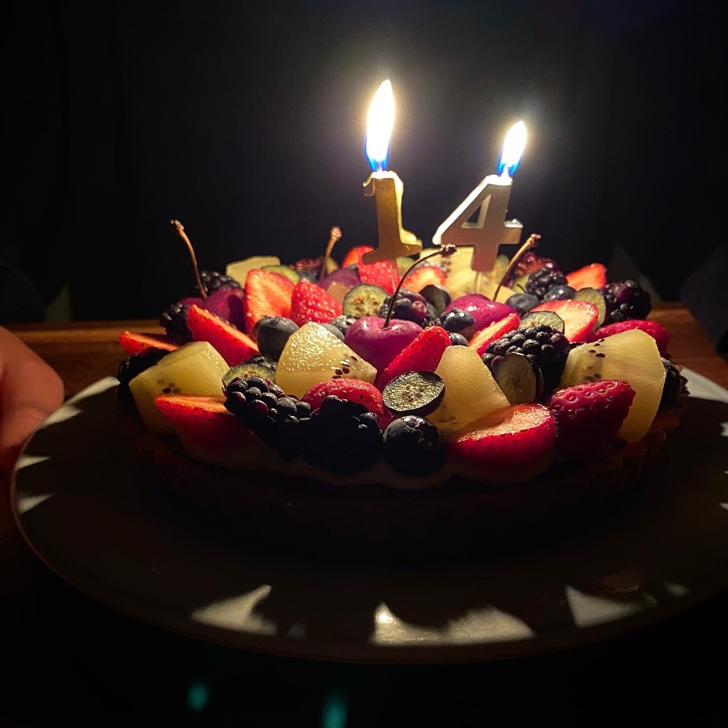 人間たちはケーキとワインとお花があればってことで、記念日用に焼いたビスキュイ・ド・サヴォワでお祝いを。